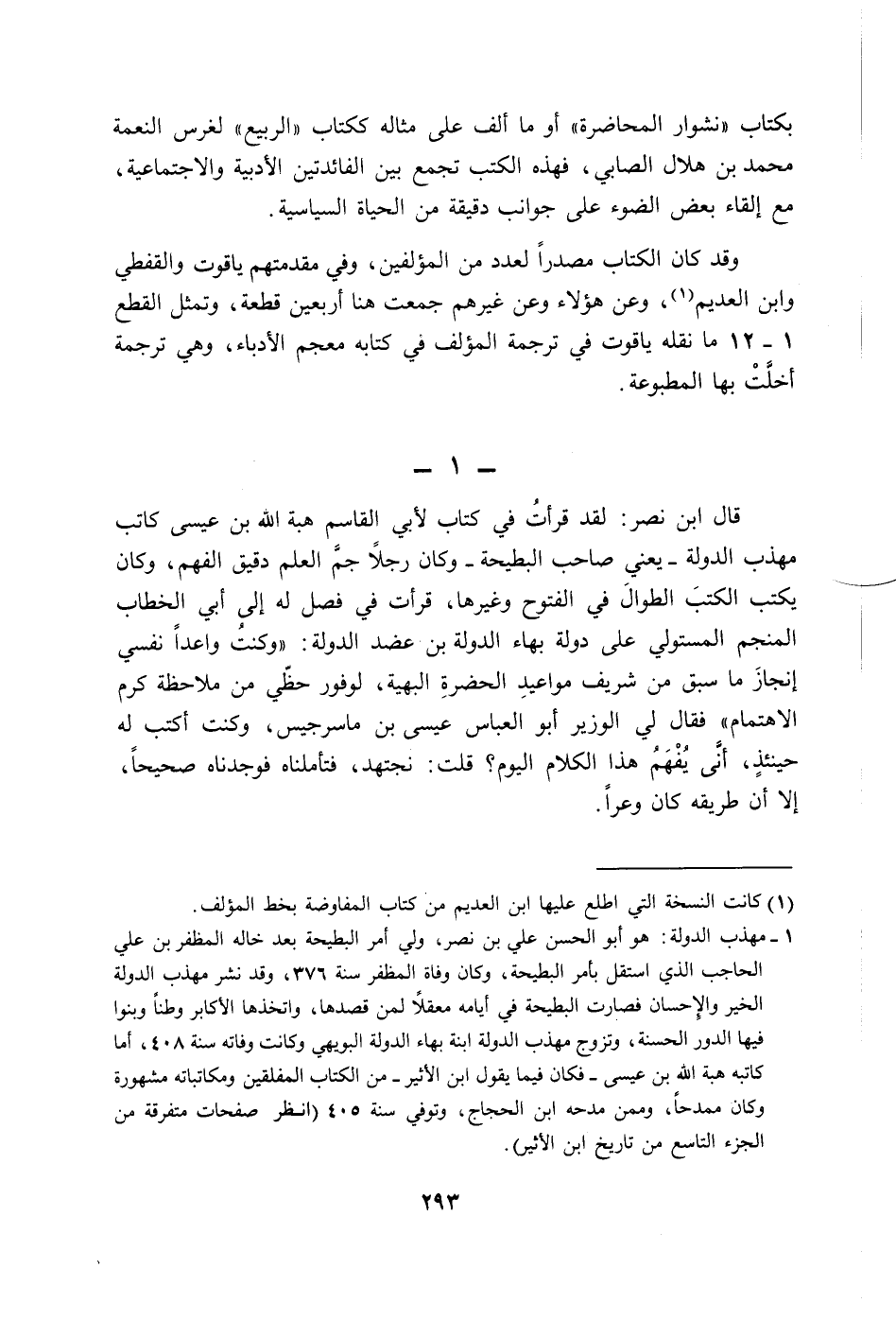 (1) كانت النسخة التي اطلع عليها ابن العديم من كتاب المفاوضة بخط المؤلف.
