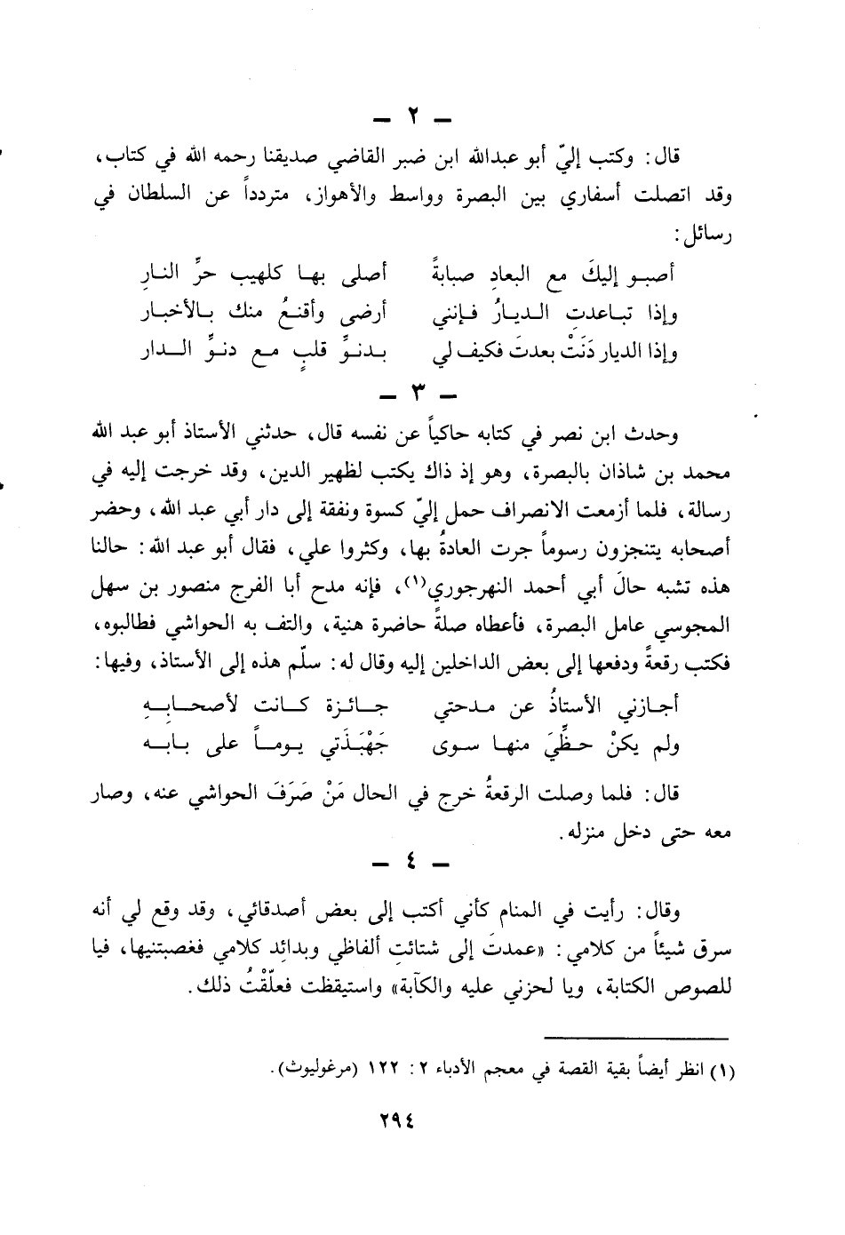 (1) انظر أيضاً بقية القصة في معجم الأدباء 2: 122 (مرغوليوث) .