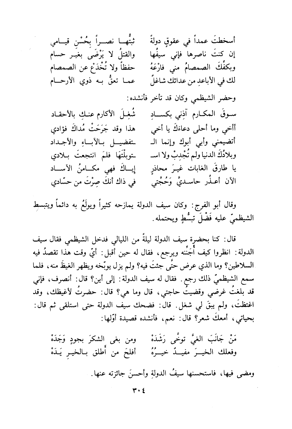 الآن أعذر حاسدي وحجتي ... في ذاك أنك صرت من حسادي وقال أبو الفرج: وكان سيف الدولة يمازحه كثيرا ويولع به دائما ويتبسط الشيظمي عليه فضل تبسط ويحتمله.