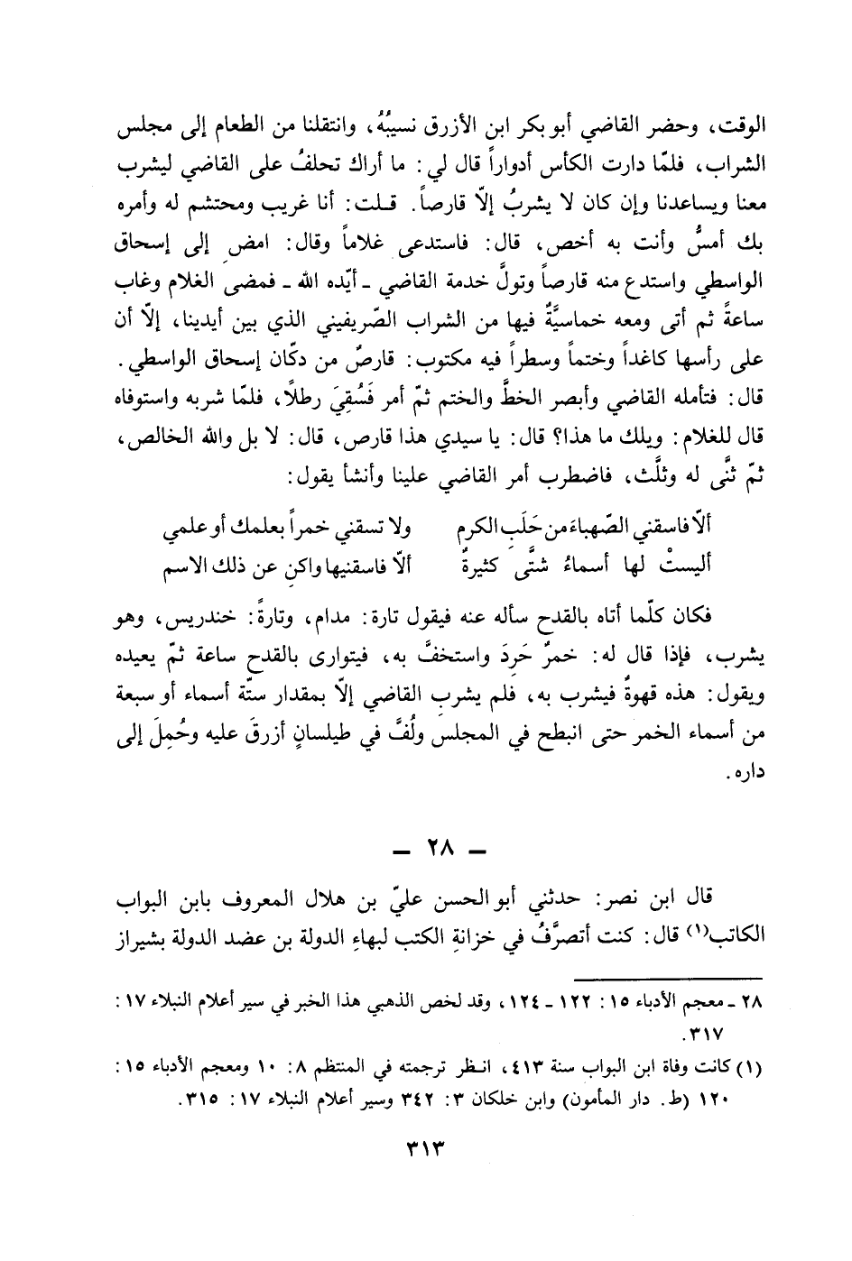 (1) معجم الأدباء 15: 122 - 124، وقد لخص الذهبي هذا الخبر في سير أعلام النبلاء 17: 317.
