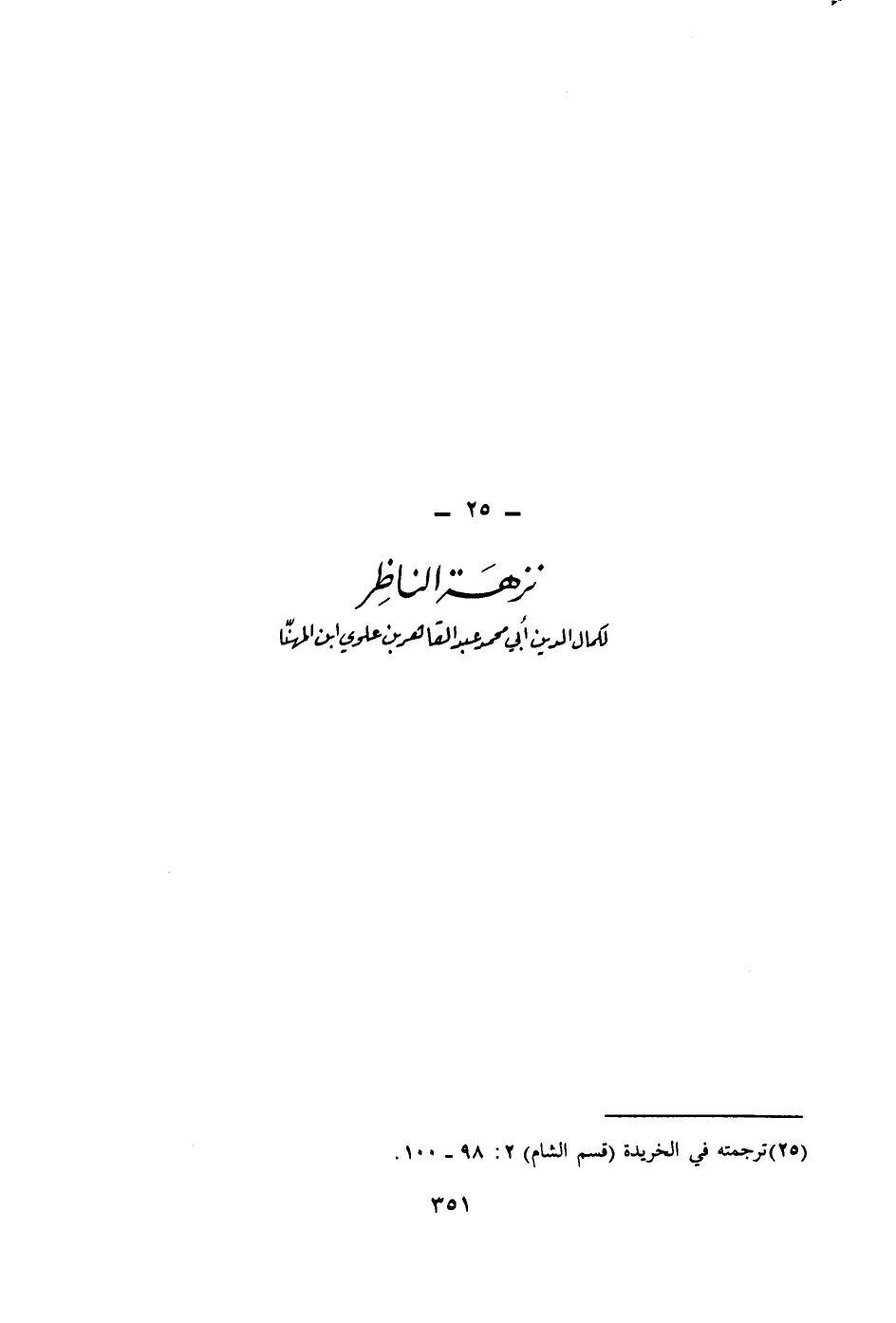 (1) ترجمته في الخريدة (قسم الشام) 2: 98 - 100.