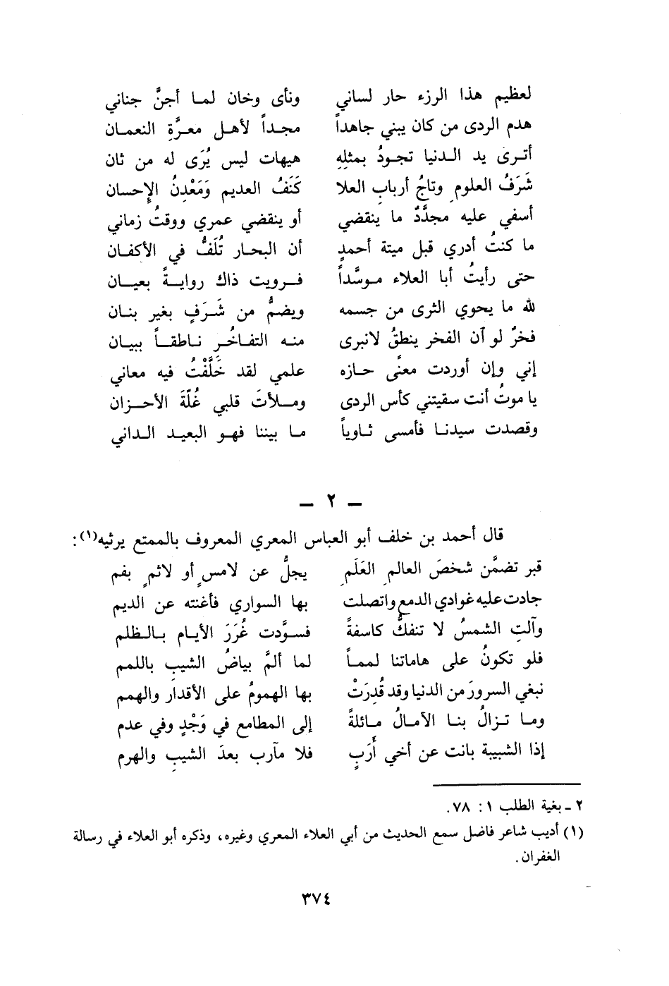 (2) أديب شاعر فاضل سمع الحديث من أبي العلاء المعري وغيره، وذكره أبو العلاء في رسالة الغفران.