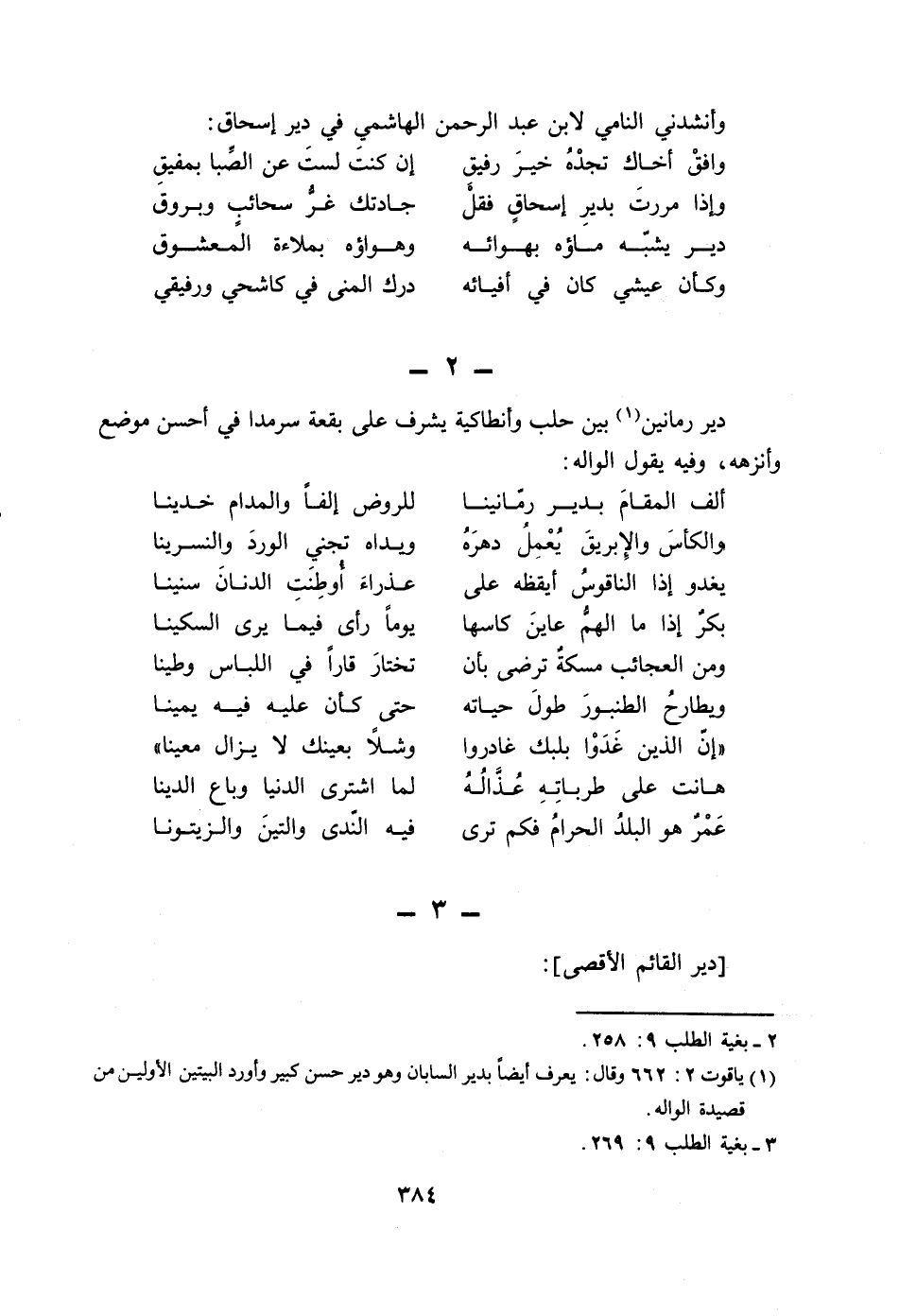 (2) ياقوت 2: 662 وقال: يعرف أيضاً بدير السابان وهو دير حسن كبير وأورد البيتين الأولين من قصيدة الواله.