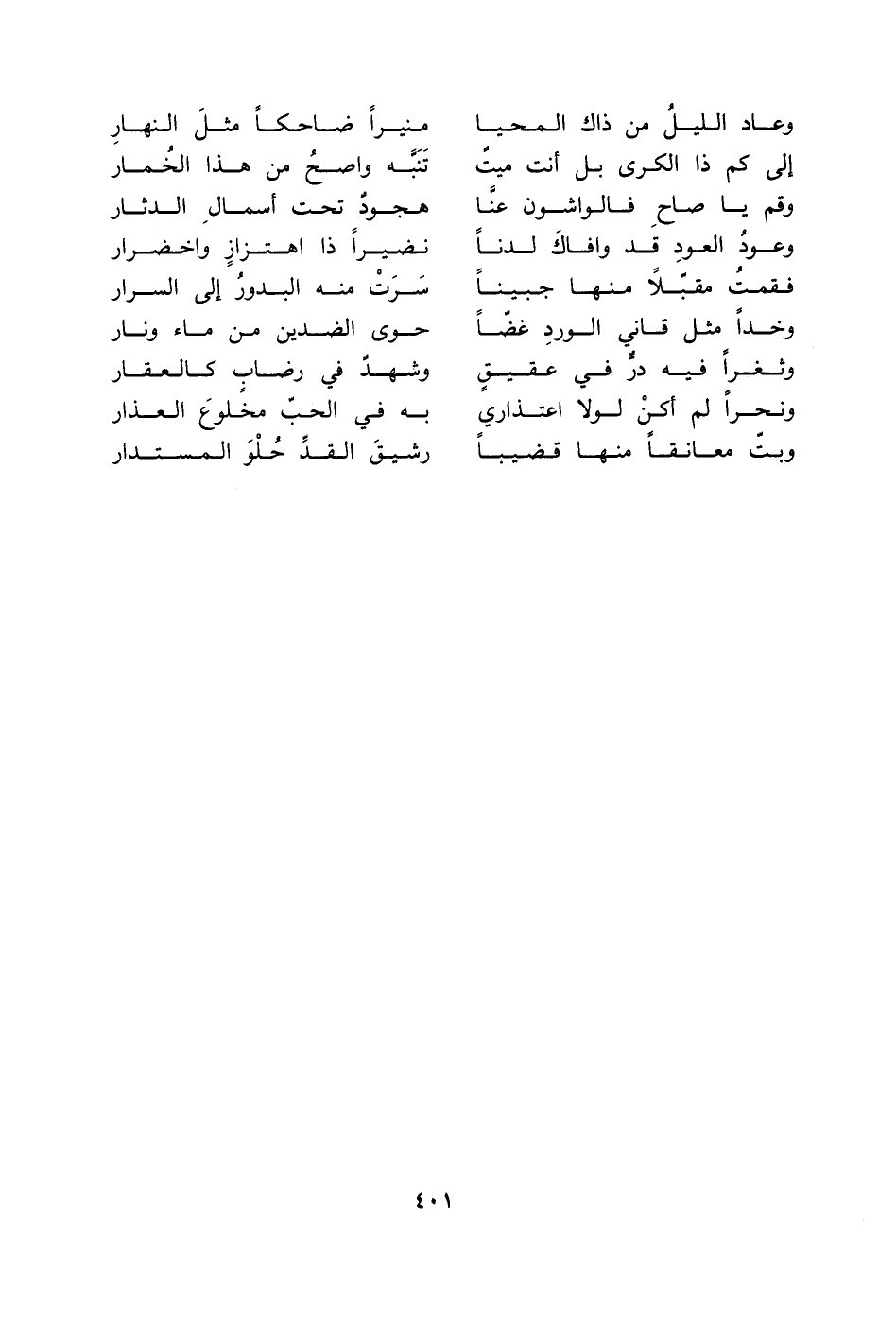 وعاد الليل من ذاك المحيا ... منيرا ضاحكا مثل النهار