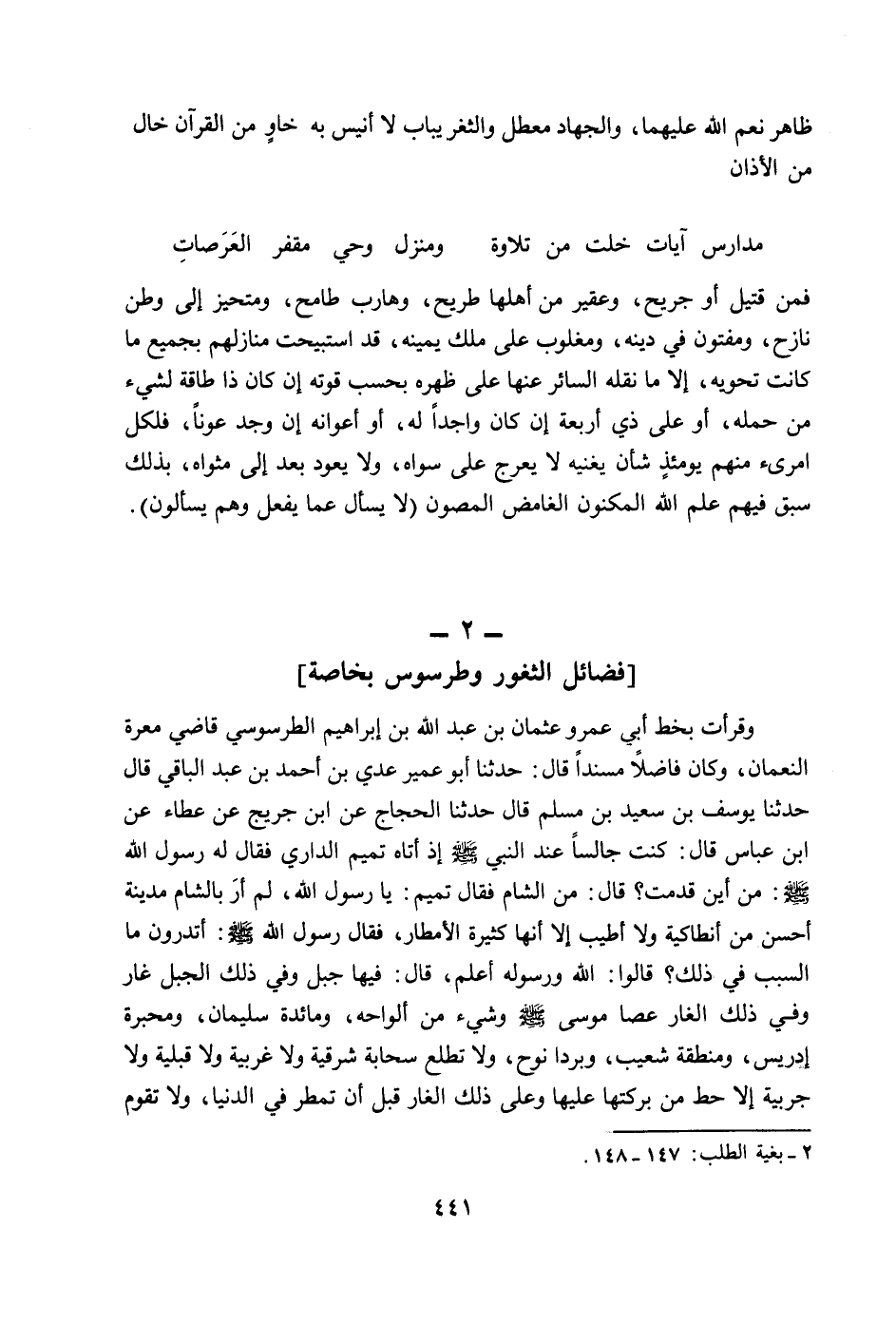 [فضائل الثغور وطرسوس بخاصة]