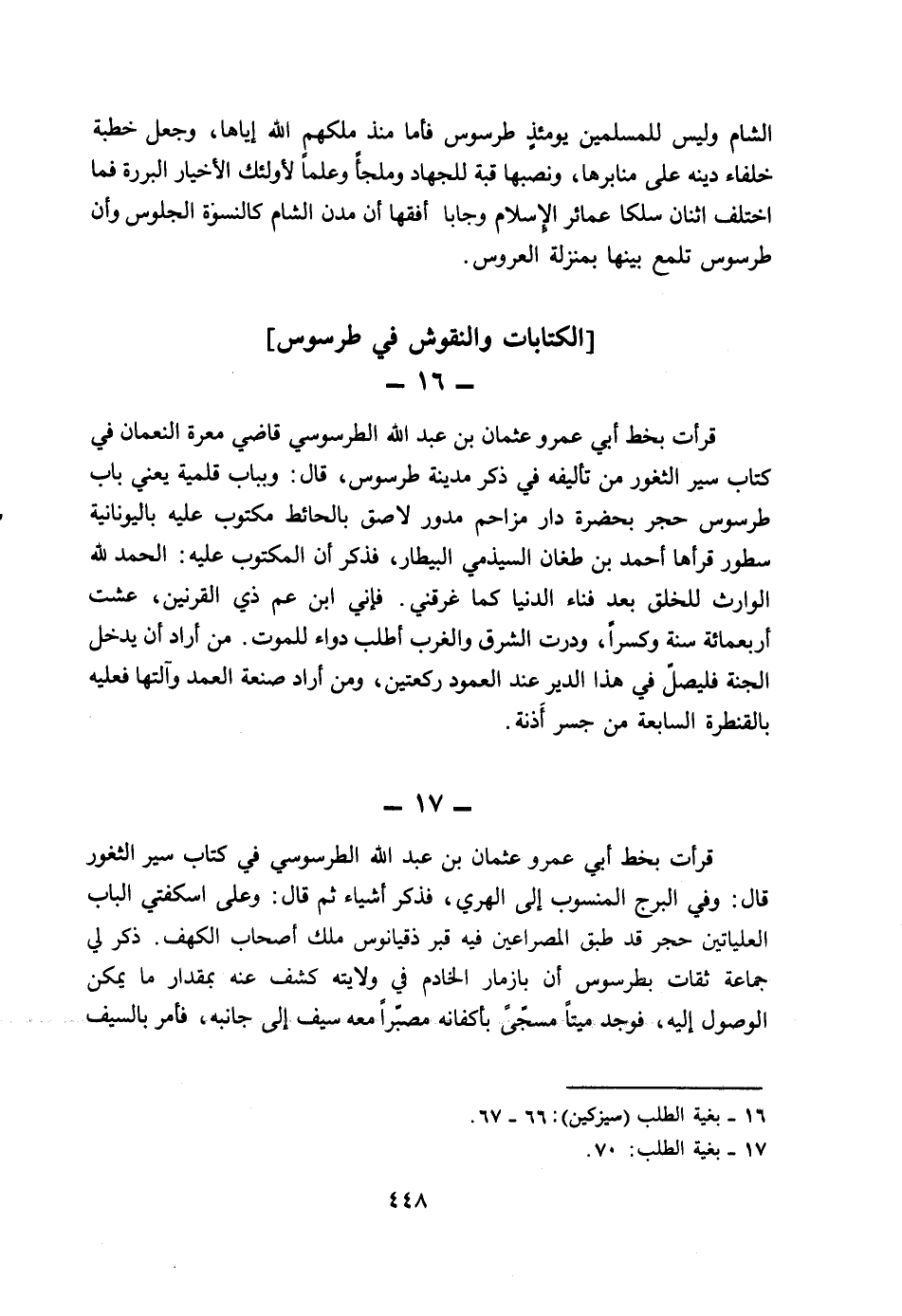 (1) بغية الطلب (سيزكين) : 66 - 67.