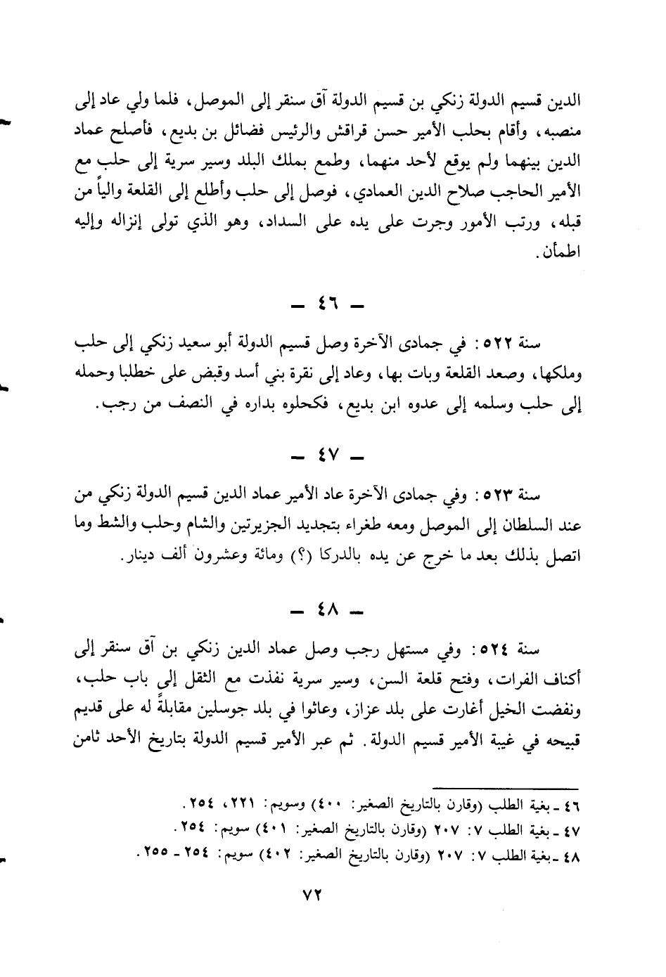 (1) بغية الطلب (وقارن بالتاريخ الصغير: 400) وسويم: 221، 254.