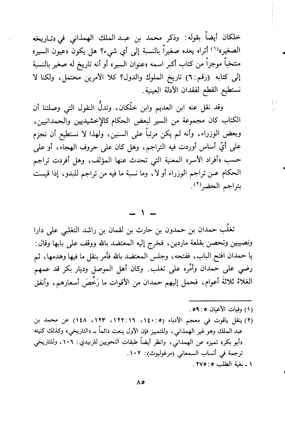 (2) ينقل ياقوت في معجم الأدباء (5: 140، 16: 122، 123، 148) عن محمد بن عبد الملك وهو غير الهمذاني، وللتمييز فإن الأول ينعت دائماً ب؟ " التاريخي " وكذلك كنيته " أبو بكر " تميزه عن الهمذاني، وانظر أيضاً طبقات النحويين للزبيدي: 106، وللتاريخي ترجمة في أنساب السمعاني (مرغوليوث) : 102.