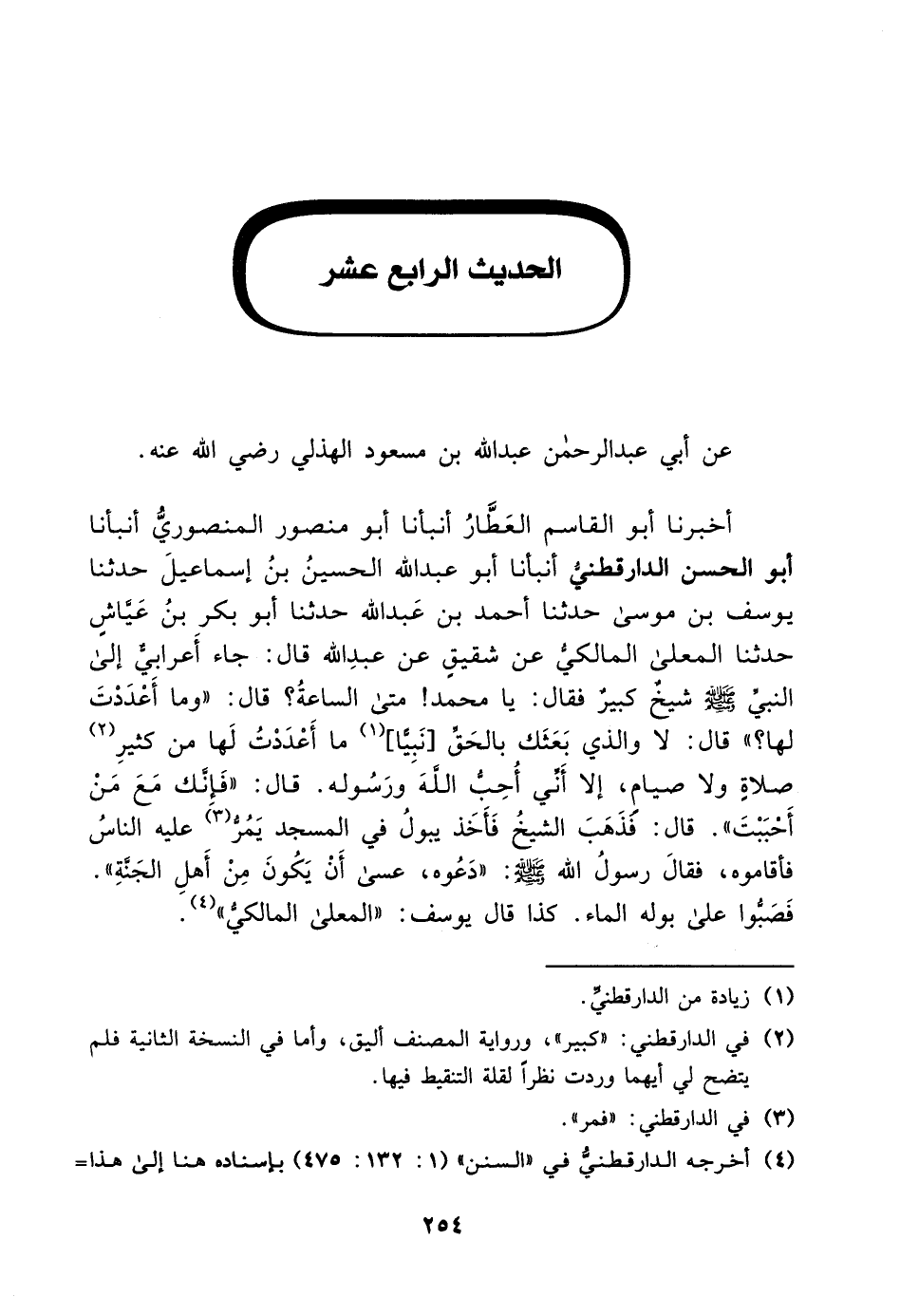 الْحَدِيثُ الرَّابِعُ عَشَرَ عَنْ أَبِي عَبْدِ الرَّحْمَنِ عَبْدِ اللَّهِ بْنِ مَسْعُودٍ الْهُذَلِيِّ رَضِيَ اللَّهُ عَنْهُ