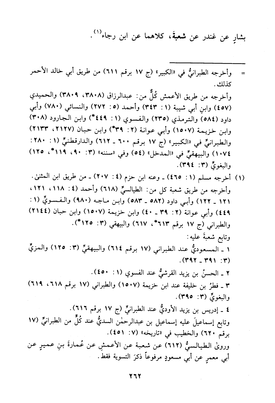 بَشَّارٍ، عَنْ غُنْدُرٍ، عَنْ شُعْبَةَ، كِلَاهُمَا عَنِ ابْنِ رَجَاءٍ.