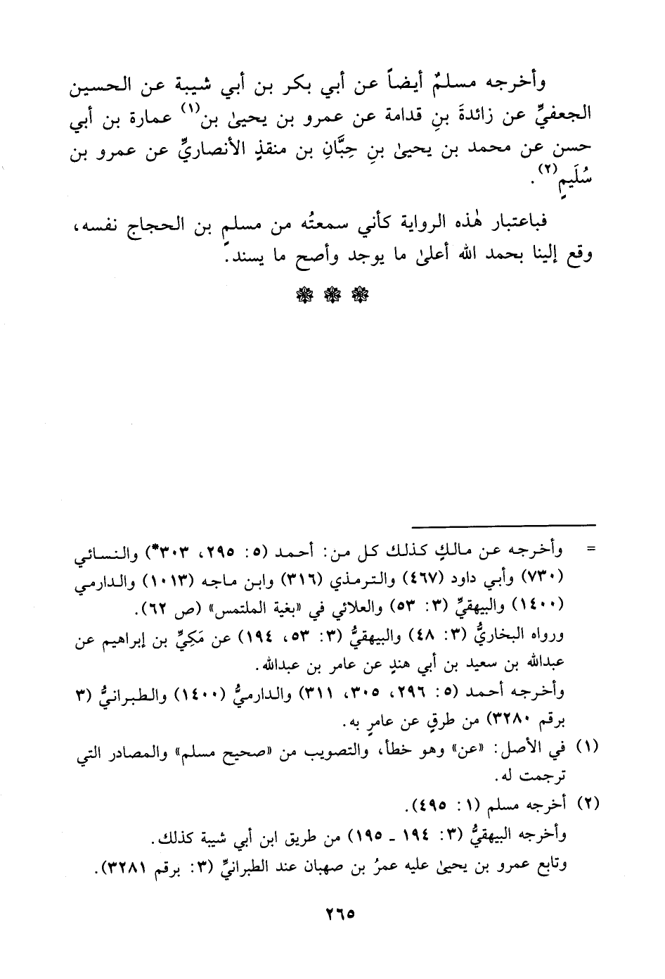 وَأَخْرَجَهُ مُسْلِمٌ أَيْضًا، عَنْ أَبِي بَكْرِ بْنِ أَبِي شَيْبَةَ، عَنِ الْحُسَيْنِ الْجُعْفِيِّ، عَنْ زَائِدَةَ بْنِ قُدَامَةَ، عَنْ عَمْرِو بْنِ يَحْيَى بْنِ عُمَارَةَ بْنِ أَبِي حَسَنٍ، عَنْ مُحَمَّدِ بْنِ يَحْيَى بْنِ حَبَّانَ بْنِ مُنْقِذٍ الْأَنْصَارِيِّ، عَنْ عَمْرِو بْنِ سُلَيمٍ.