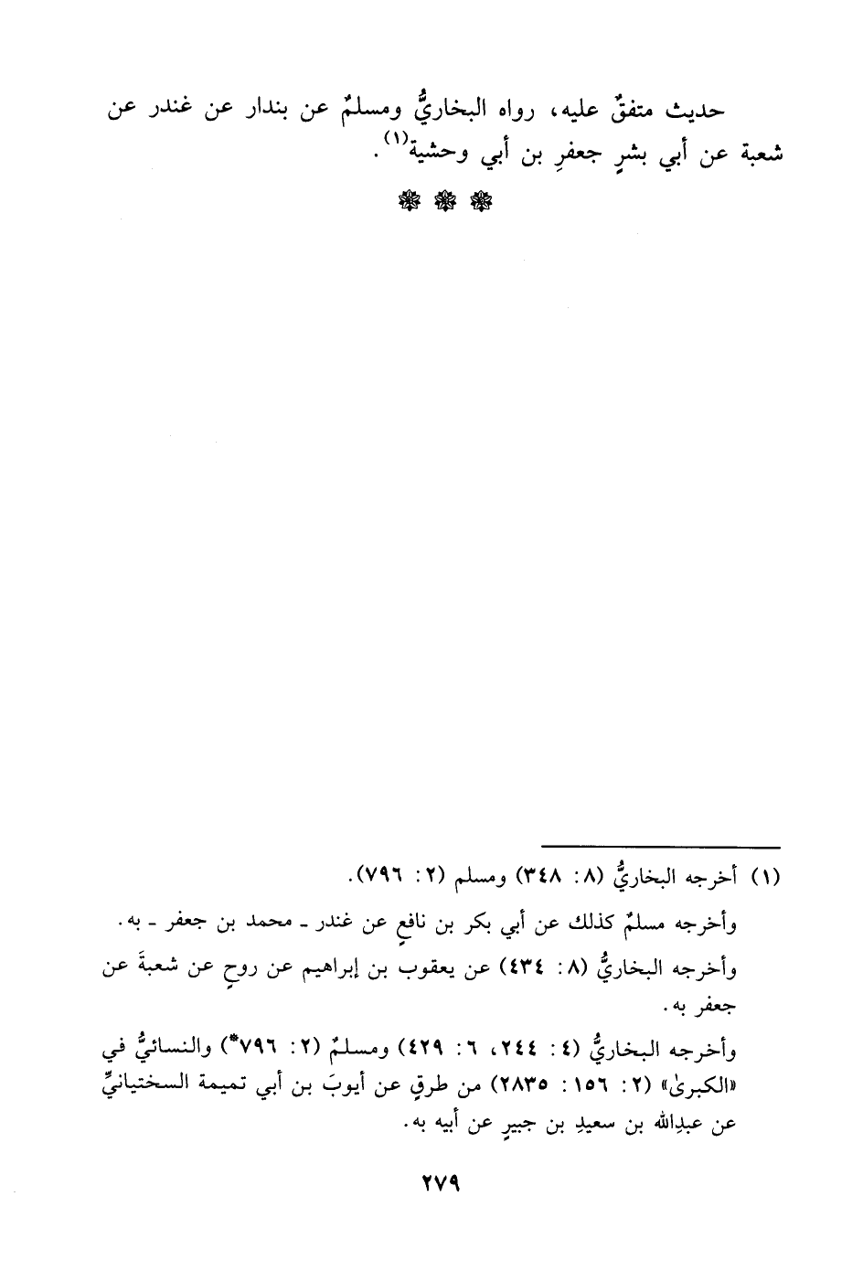 حَدِيثٌ مُتَّفَقٌ عَلَيْهِ، رَوَاهُ الْبُخَارِيُّ وَمُسْلِمٌ، عَنْ بُنْدَارٍ، عَنْ غُنْدُرٍ، عَنْ شُعْبَةَ، عَنْ أَبِي بِشْرٍ جَعْفَرِ بْنِ أَبِي وَحْشِيَّةَ