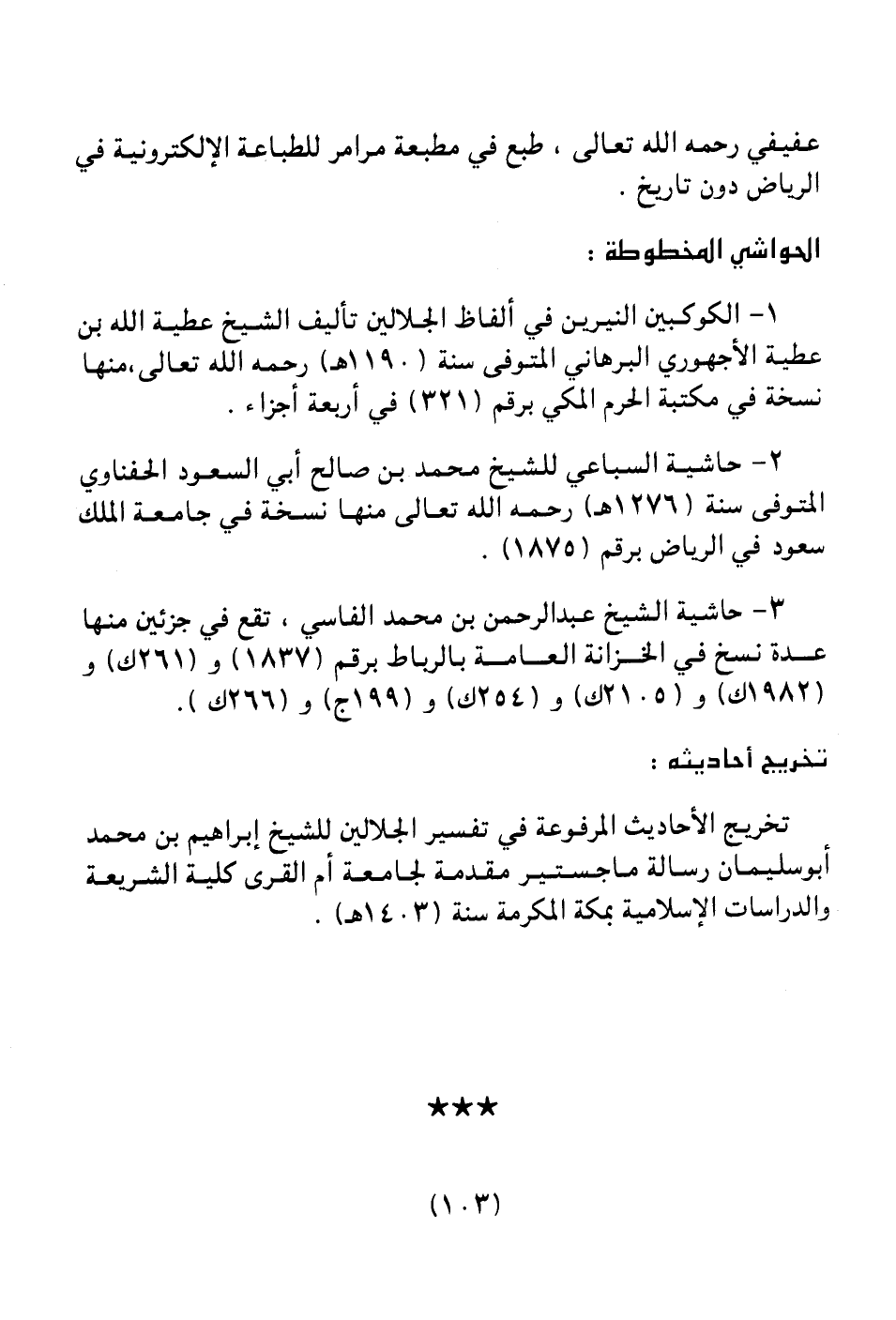 عفيفي رحمه الله تعالى، طبع في مطبعة مرامر للطباعة الإلكترونية في الرياض دون تاريخ.