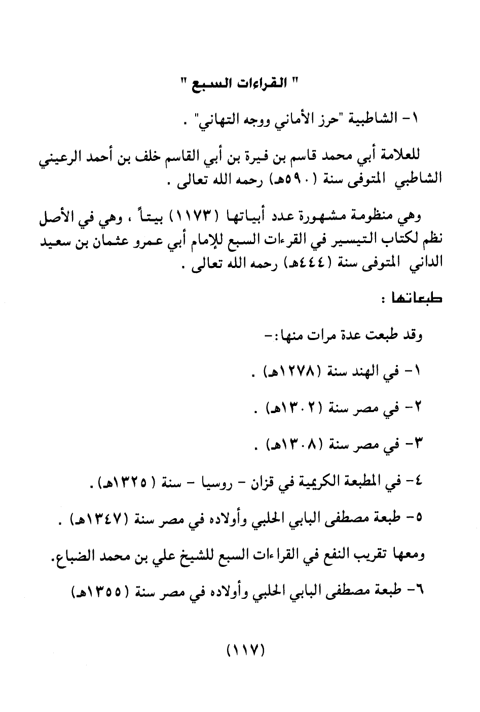 1 ـ الشاطبية " حرز الأماني ووجه التهاني "