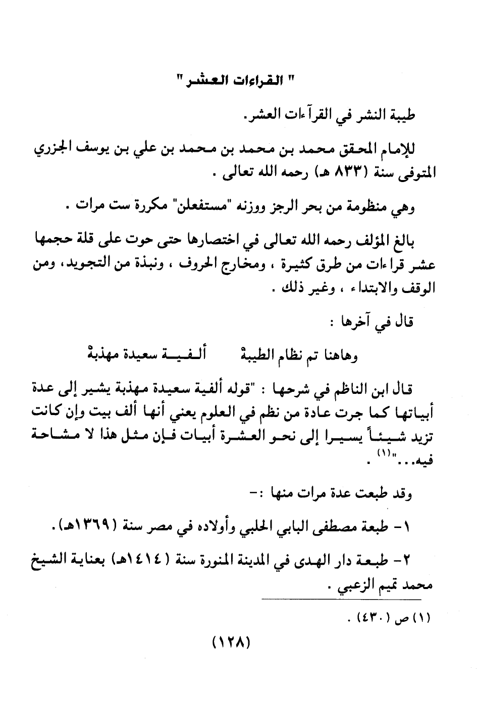 طيبة النشر في القراءات العشر.