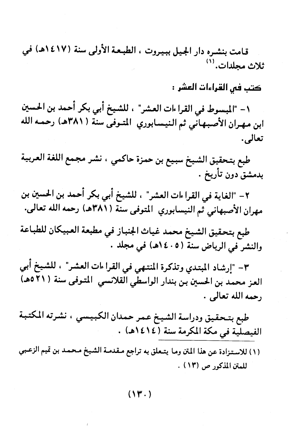 1 ـ " المبسوط في القراءات العشر " للشيخ أبي بكر أحمد بن الحسين ابن مهران الأصبهاني ثم النيسابوري المتوفي سنة (381هـ) رحمه الله تعالى.