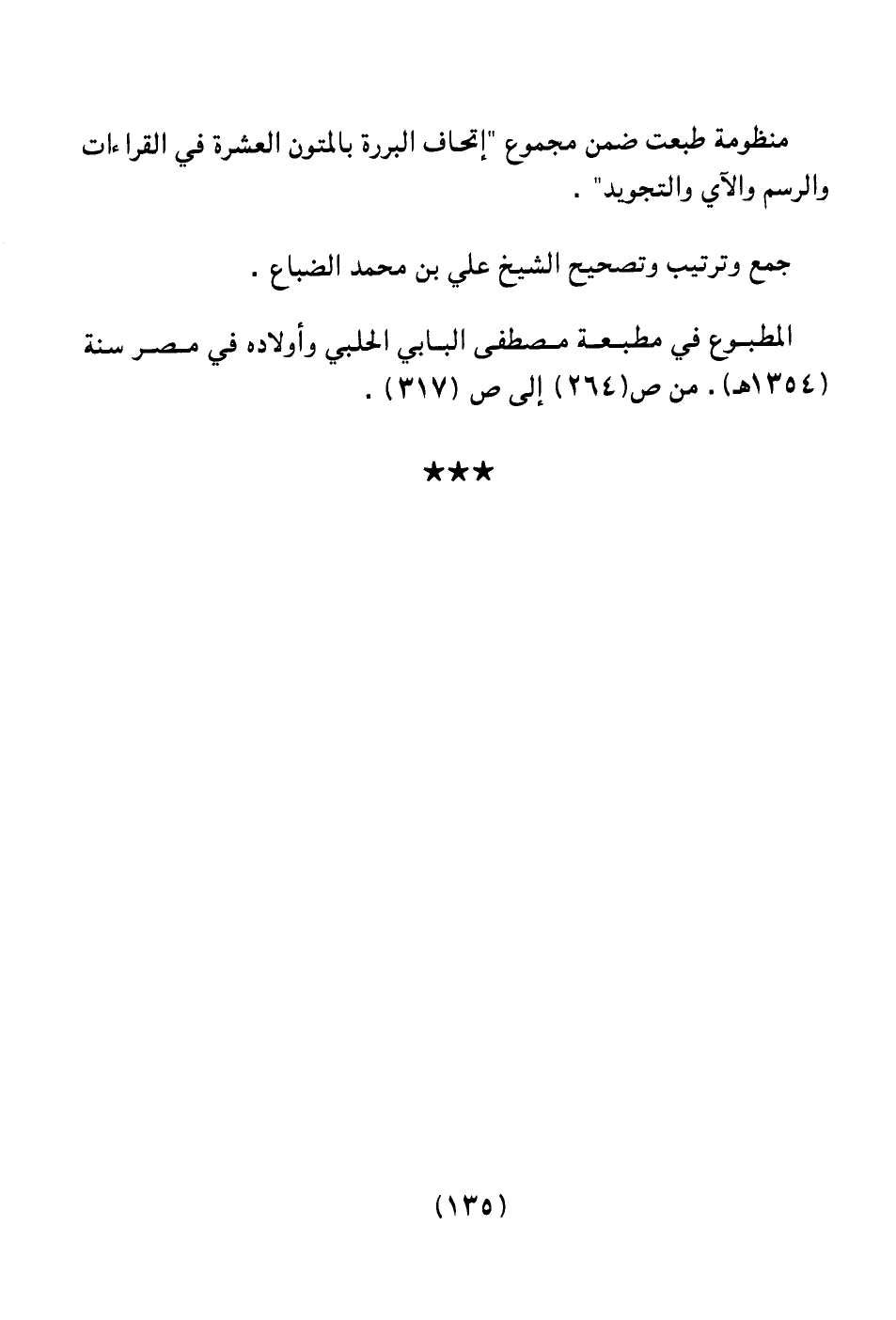 جمع وترتيب وتصحيح الشيخ علي بن محمد الضباع.