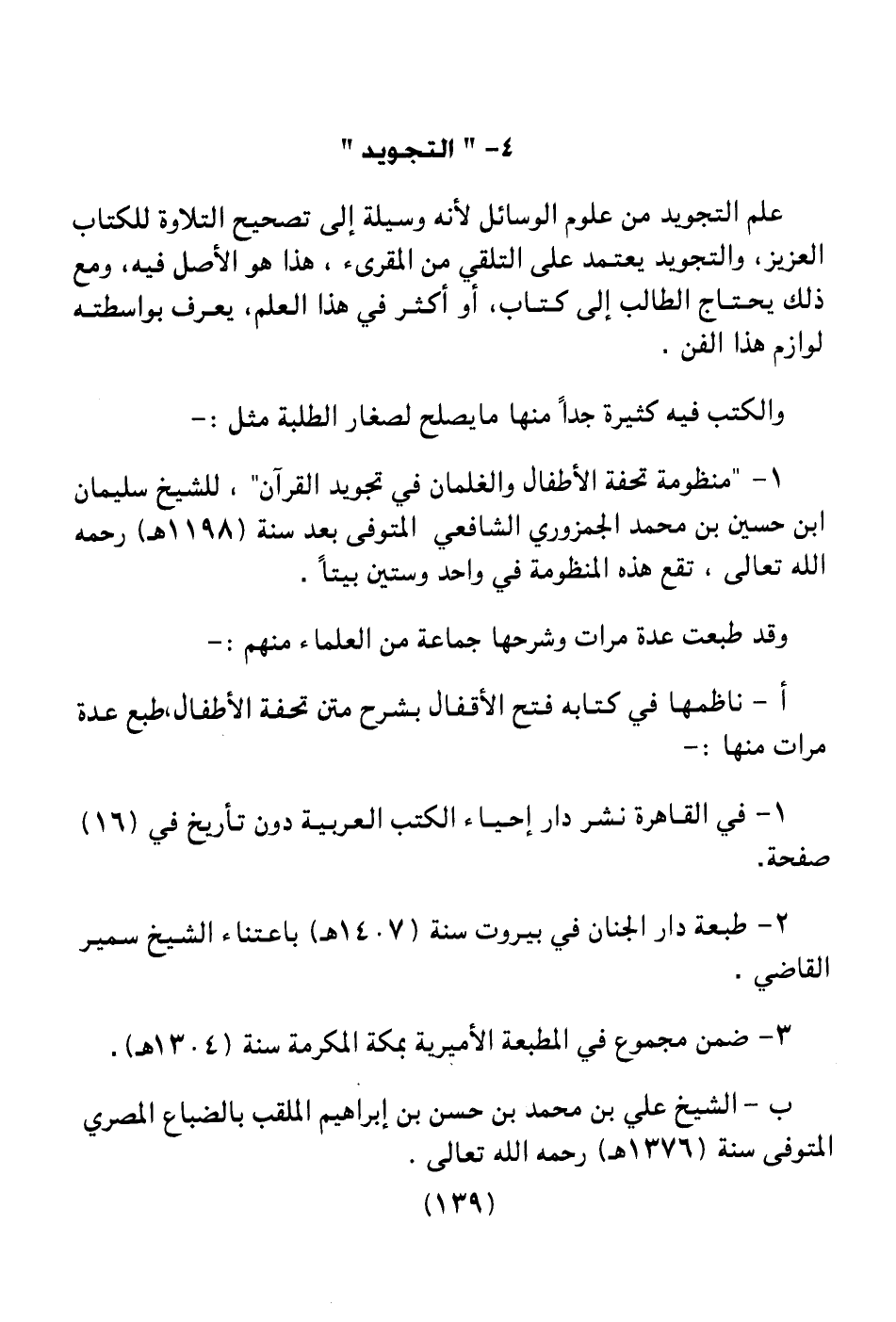 1 ـ " منظومة تحفة الأطفال والغلمان في تجويد القرآن " للشيخ سليمان ابن حسين بن محمد الجمزوري الشافعي المتوفي بعد سنة (1198هـ) رحمه الله تعالى، تقع هذه المنظومة في واحد وستين بيتاً.