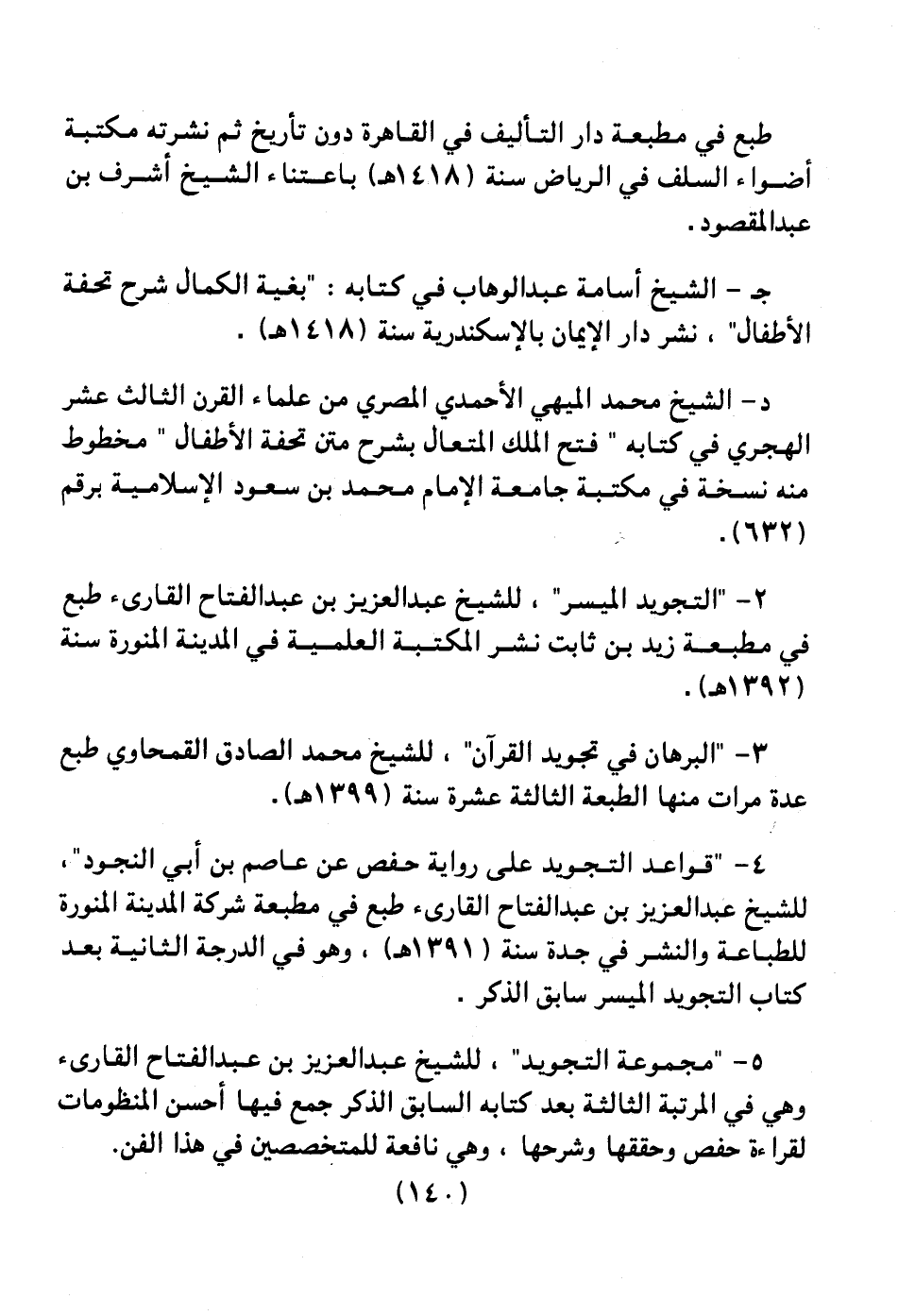 جـ ـ الشيخ أسامة عبد الوهاب في كتابه: " بغية الكمال شرح تحفة الأطفال " نشر دار الإيمان بالإسكندرية سنة (1418هـ) .