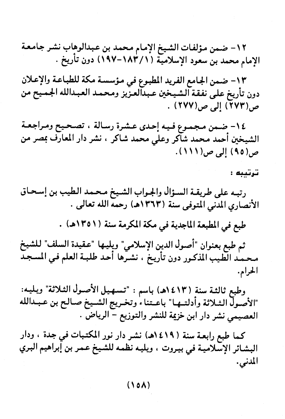 12 ـ ضمن مؤلفات الشيخ الإمام محمد بن عبد الوهاب نشر جامعة الإمام محمد بن سعود الإسلامية (1/183 ـ 197) دون تاريخ.