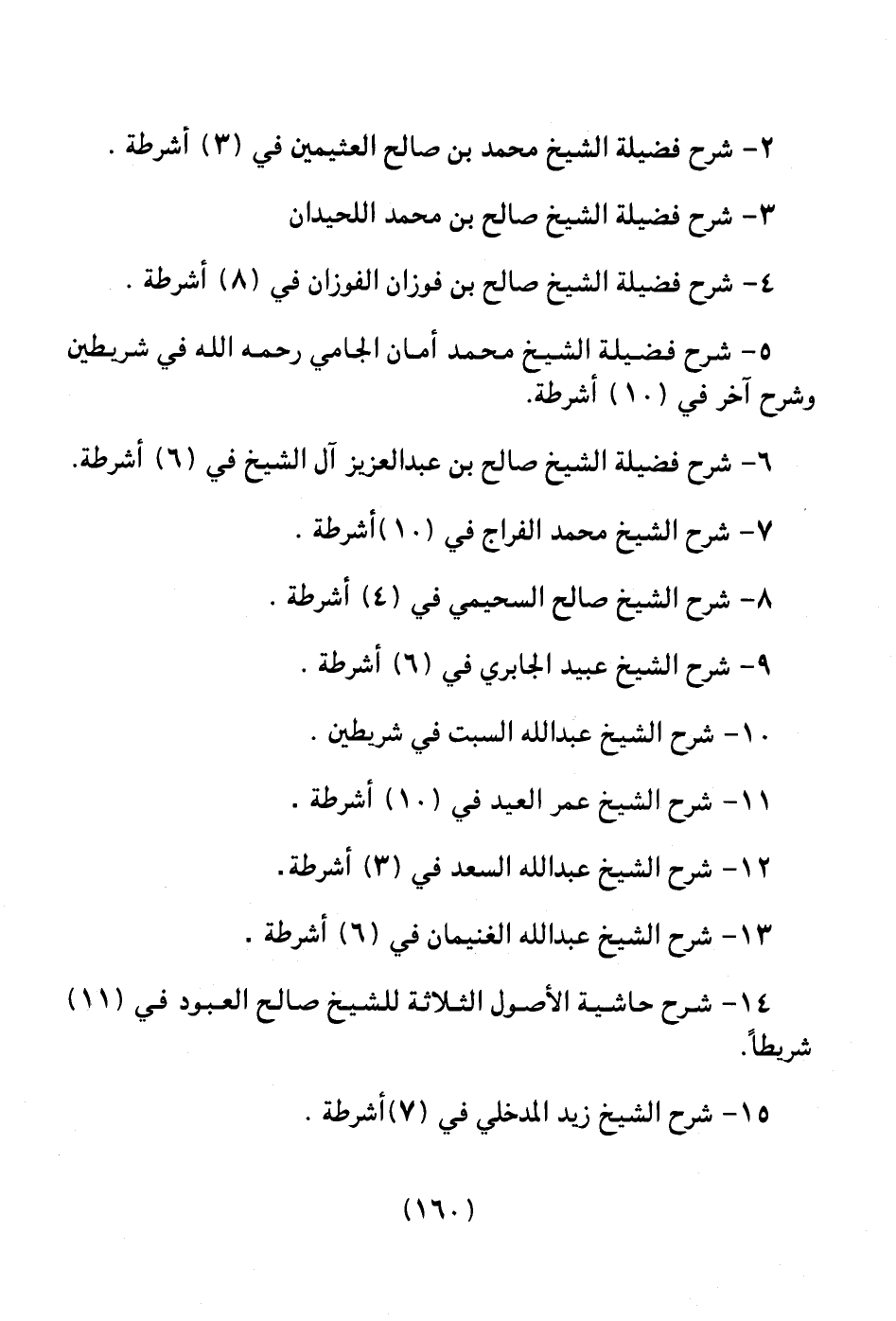 6 ـ شرح فضيلة الشيخ صالح بن عبد العزيز آل الشيخ في (6) أشرطة.