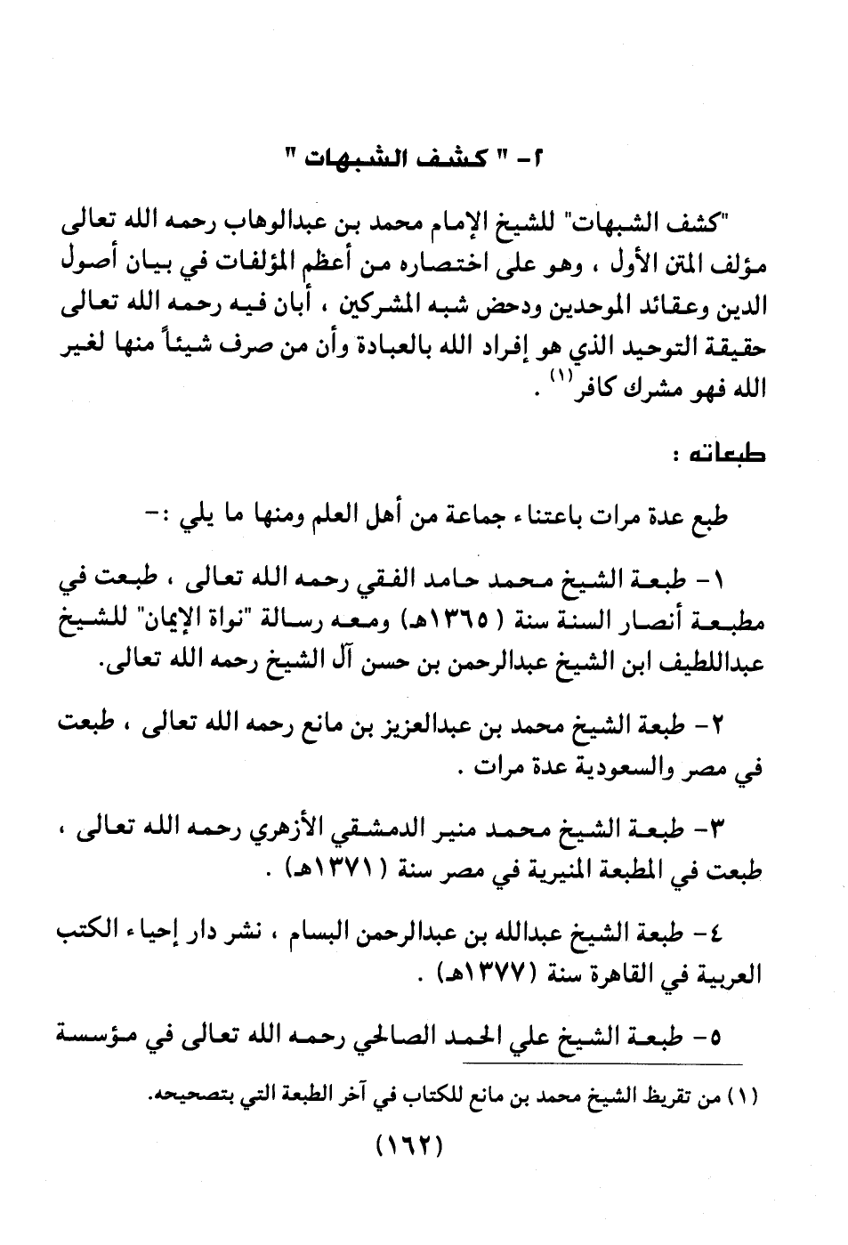 2 ـ " كشف الشبهات "