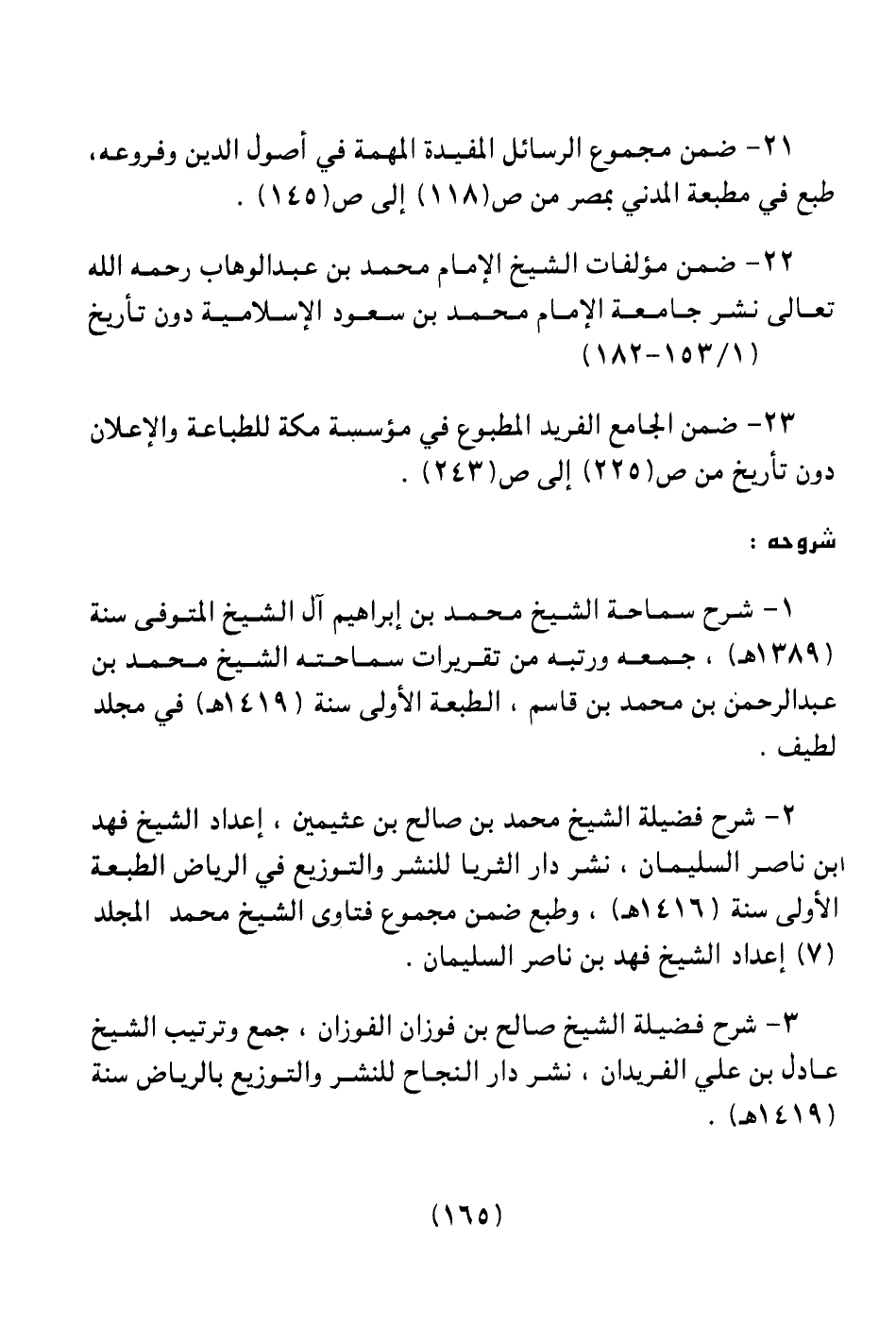 22 ـ ضمن مؤلفات الشيخ الإمام محمد بن عبد الوهاب رحمه الله تعالى نشر جامعة الإمام محمد بن سعود الإسلامية دون تاريخ (1/153 ـ 182) .