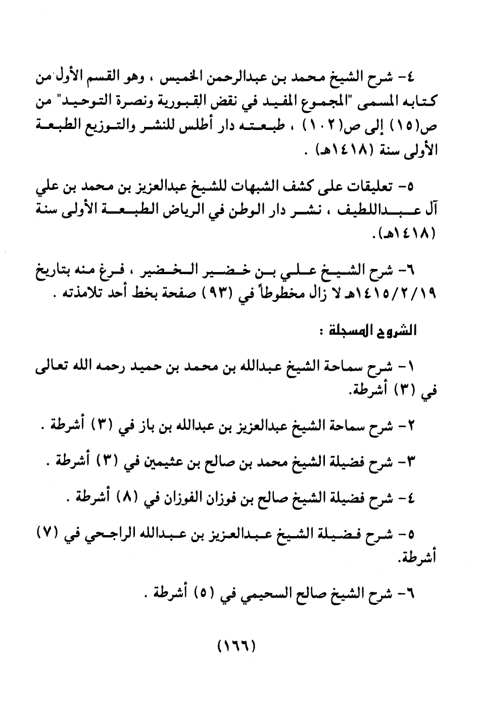 4 ـ شرح الشيخ محمد بن عبد الرحمن الخميس، وهو القسم الأول من كتابه المسمى " المجموع المفيد في نقض القبورية ونصرة التوحيد " من ص (15) إلى ص (102) طبعته دار أطلس للنشر والتوزيع الطبعة الأولى سنة (1418هـ) .