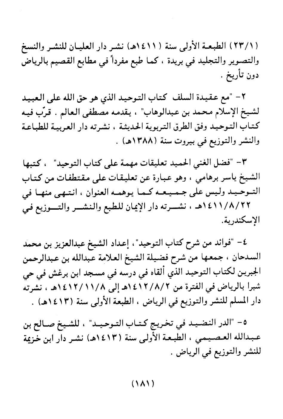 (1/23) الطبعة الأولى سنة (1411هـ) نشر دار العليان للنشر والنسخ والتصوير والتجليد في بريدة، كما طبع مفرداً في مطابع القصيم بالرياض دون تاريخ.