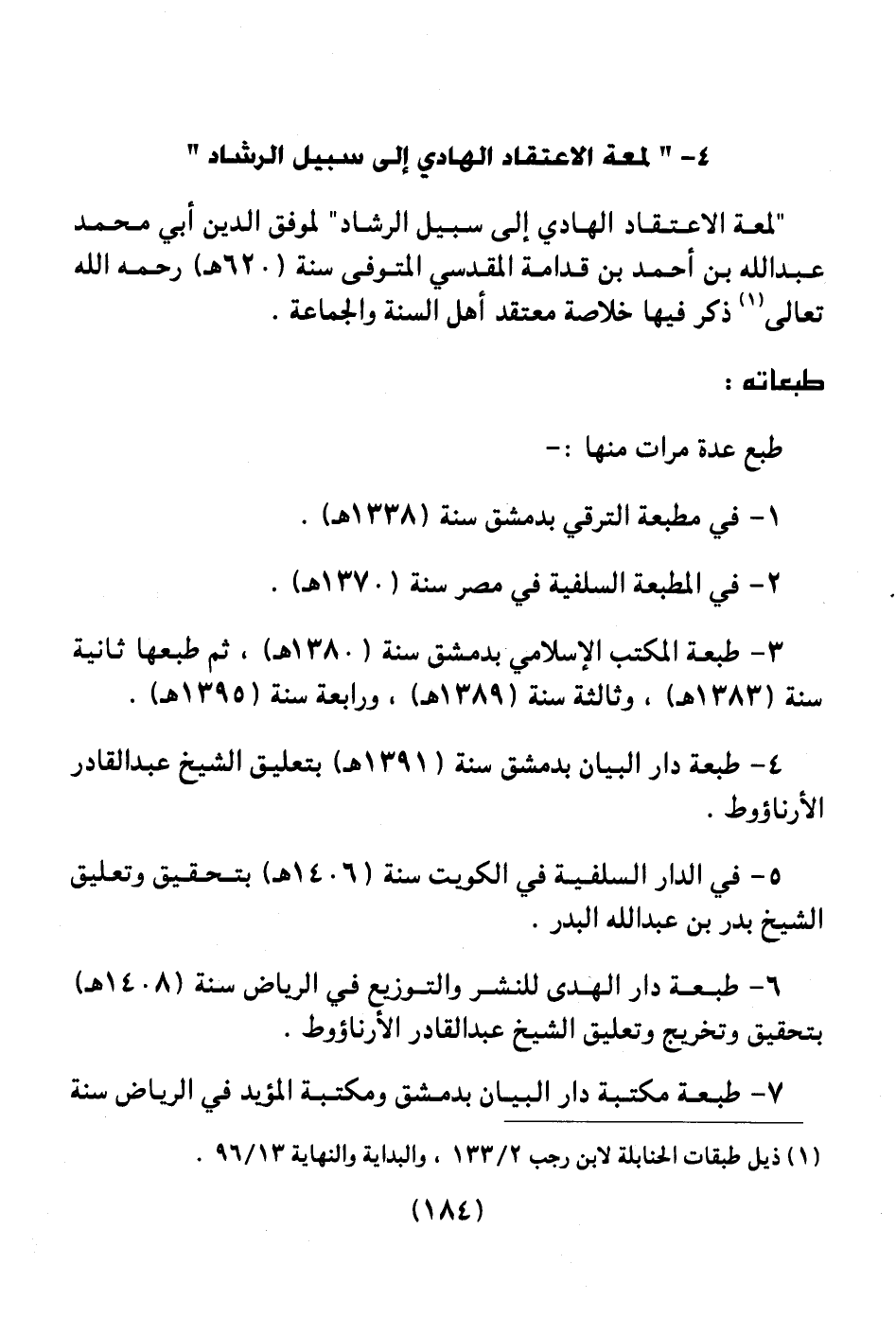 4 ـ " لمعة الاعتقاد الهادي إلى سبيل الرشاد "