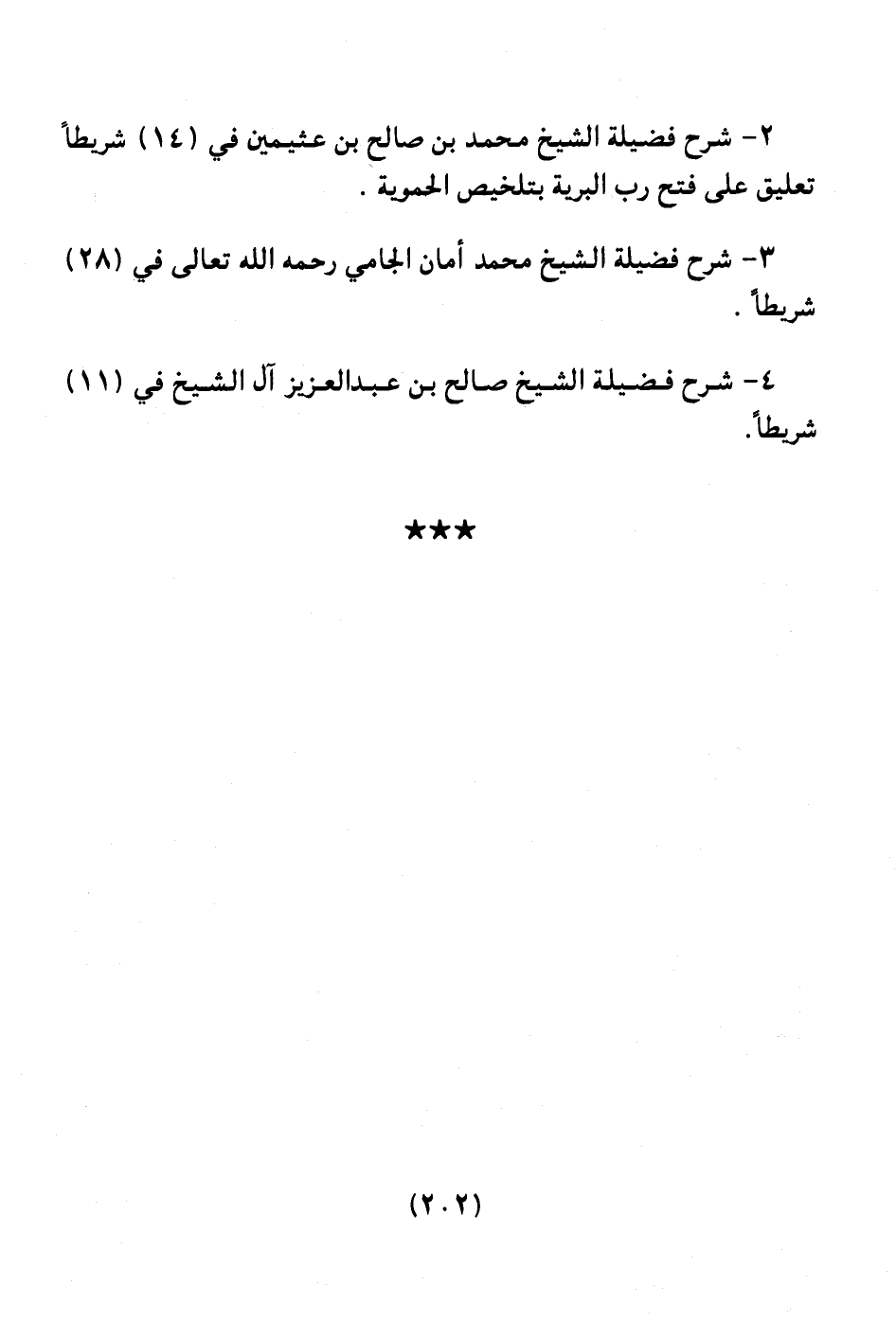 2 ـ شرح فضيلة الشيخ محمد بن صالح بن عثيمين في (14) شريطاً تعليق على فتح رب البرية بتلخيص الحموية.