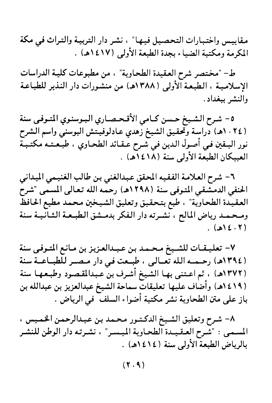 ط ـ " مختصر شرح العقيدة الطحاوية " من مطبوعات كلية الدراسات الإسلامية، الطبعة الأولى (1388هـ) من مطبوعات كلية الدراسات الإسلامية، الطبعة الأولى (1388هـ) من منشورات دار النذير للطباعة والنشر ببغداد.