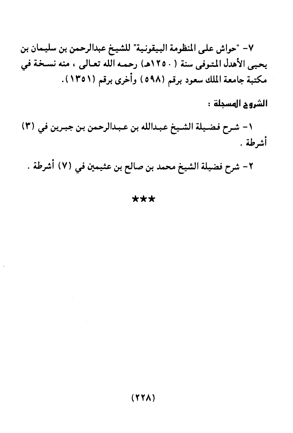 1 ـ شرح فضيلة الشيخ عبد الله بن عبد الرحمن بن جبرين في (3) أشرطة.