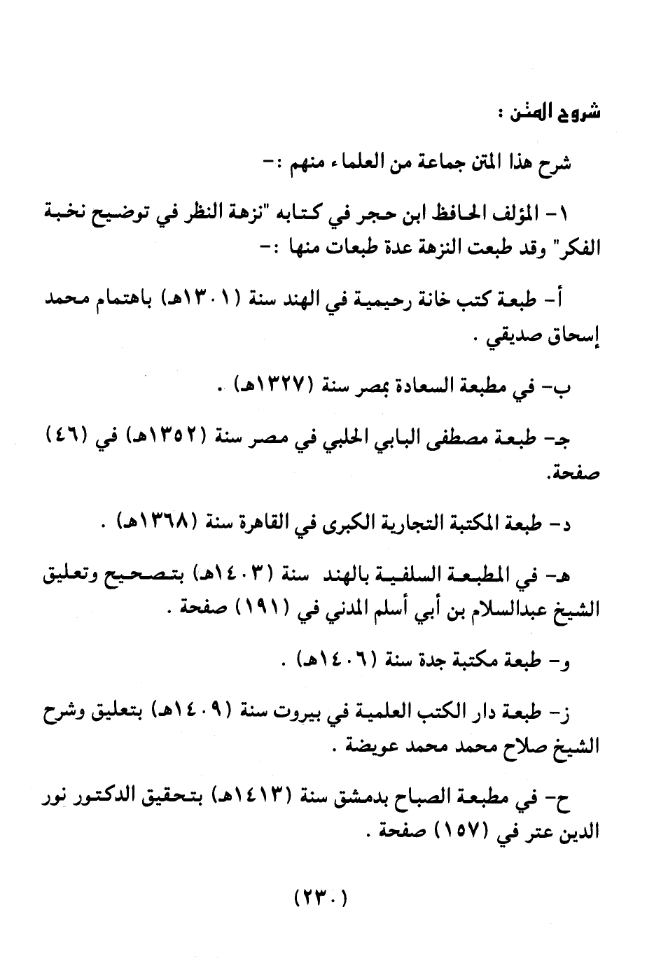 1 ـ المؤلف الحافظ ابن حطر في كتابه " نزهة النظر في توضيح نخبة الفكر " وقد طبعت النزهة عدة طبعات منها: ـ