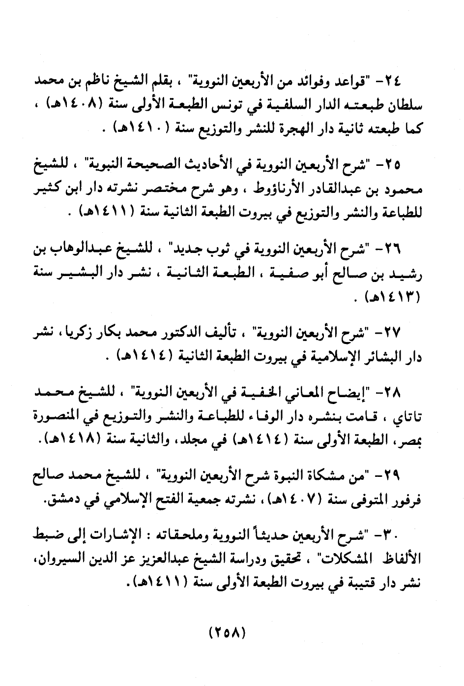 27 ـ " شرح الأربعين النووية " تأليف الدكتور محمد بكار زكريا، نشر دار البشائر الإسلامية في بيروت الطبعة الثانية (1414هـ) .