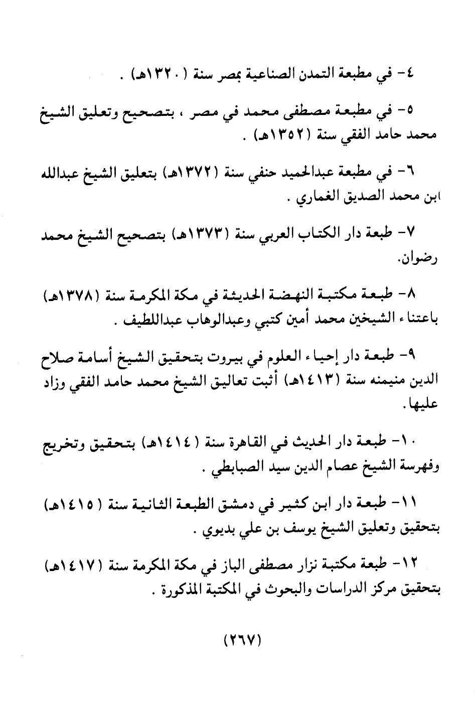 7 ـ طبعة دار الكتب العربي سنة (1373هـ) بتصحيح الشيخ محمد رضوان.
