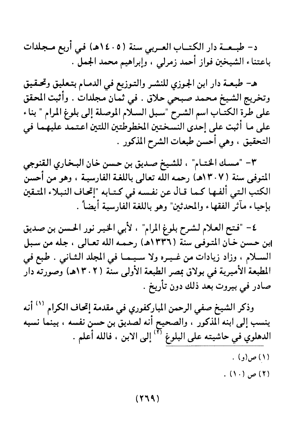 وذكر الشيخ صفي الرحمن المباركفوري في مقدمة إتحاف الكرام (¬1) أنه ينسب إلى ابنه المذكور، والصحيح أنه لصديق بن حسن نفسه، بينما نسبه الدهلوي في حاشيته على البلوغ (¬2) إلى الابن، فالله أعلم.