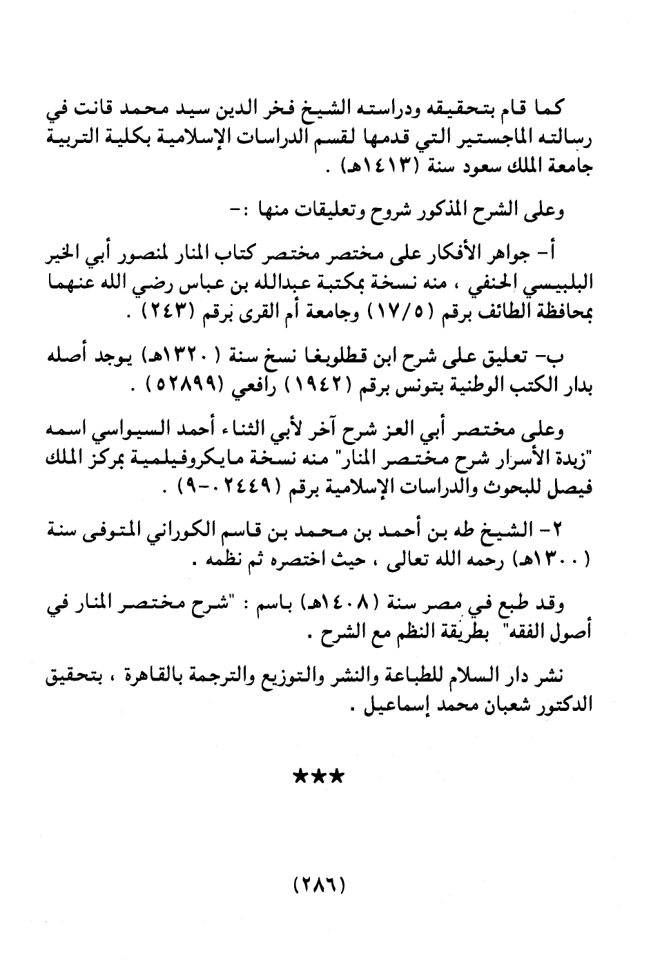 كما قام بتحقيقه ودراسته الشيخ فخر الدين سيد محمد قانت في رسالته الماجستير التي قدمها لقسم الدراسات الإسلامية بكلية التربية جامعة الملك سعود سنة (1413هـ) .