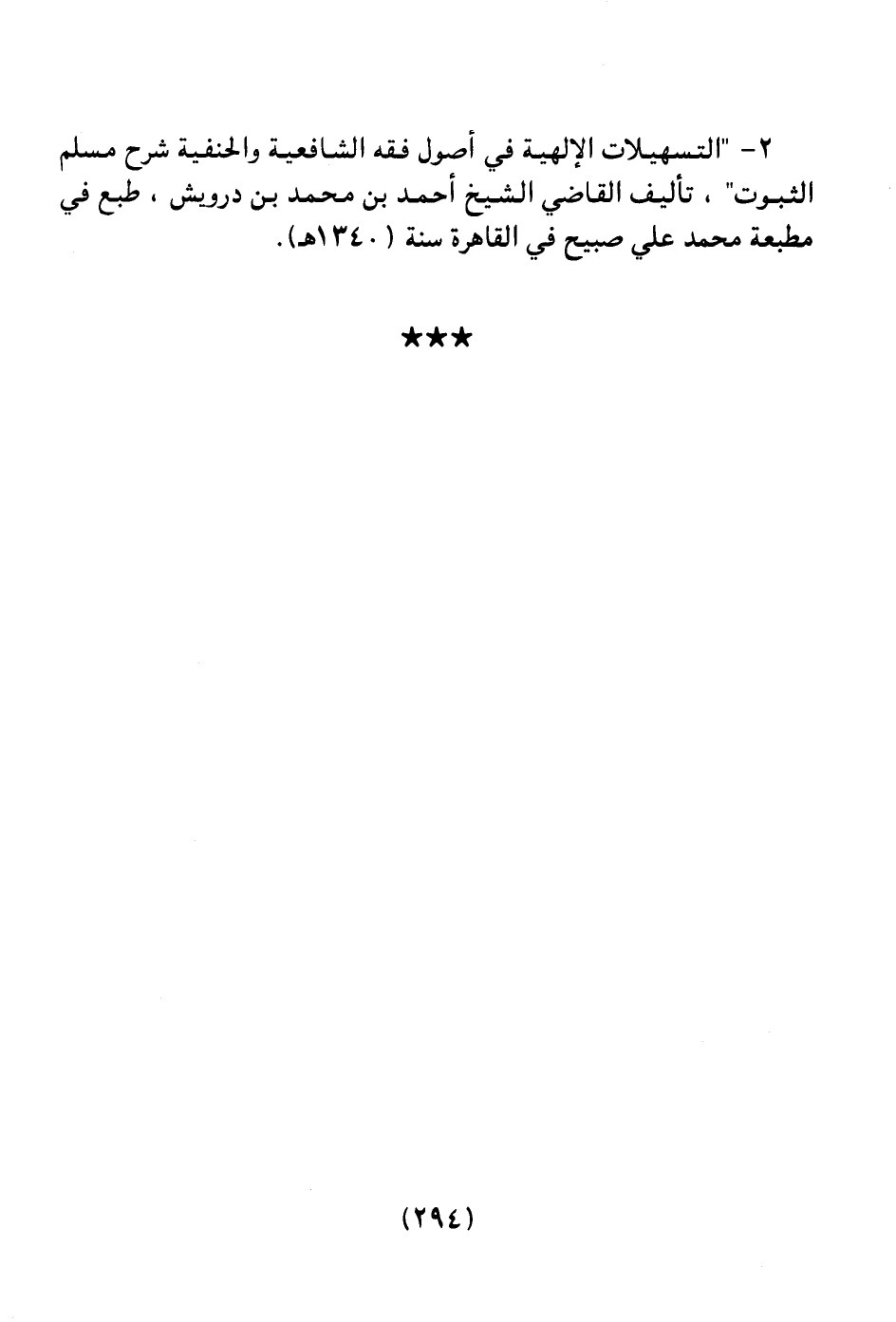 2 ـ " التسهيلات الإلهية في أصول فقه الشافعية والحنفية شرح مسلم الثبوت " تأليف القاضي الشيخ أحمد بن محمد درويش، طبع في مطبعة محمد علي صبيح في القاهرة سنة (1340هـ) .