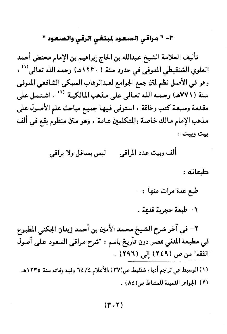 2 ـ في آخر شرح الشيخ محمد أمين بن أحمد زيدان الجكني المطبوع في مطبعة المدني بمصر دون تاريخ باسم: " شرح مراقي السعود على أصول الفقه " من ص (249) إلى (296) .