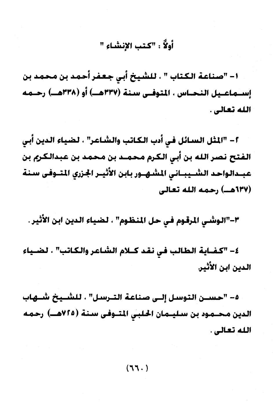 5 ـ " حسن التوسل إلى صناعة الترسل " للشيخ شهاب الدين محمود بن سليمان الحلبي المتوفي سنة (725هـ) رحمه الله تعالى.
