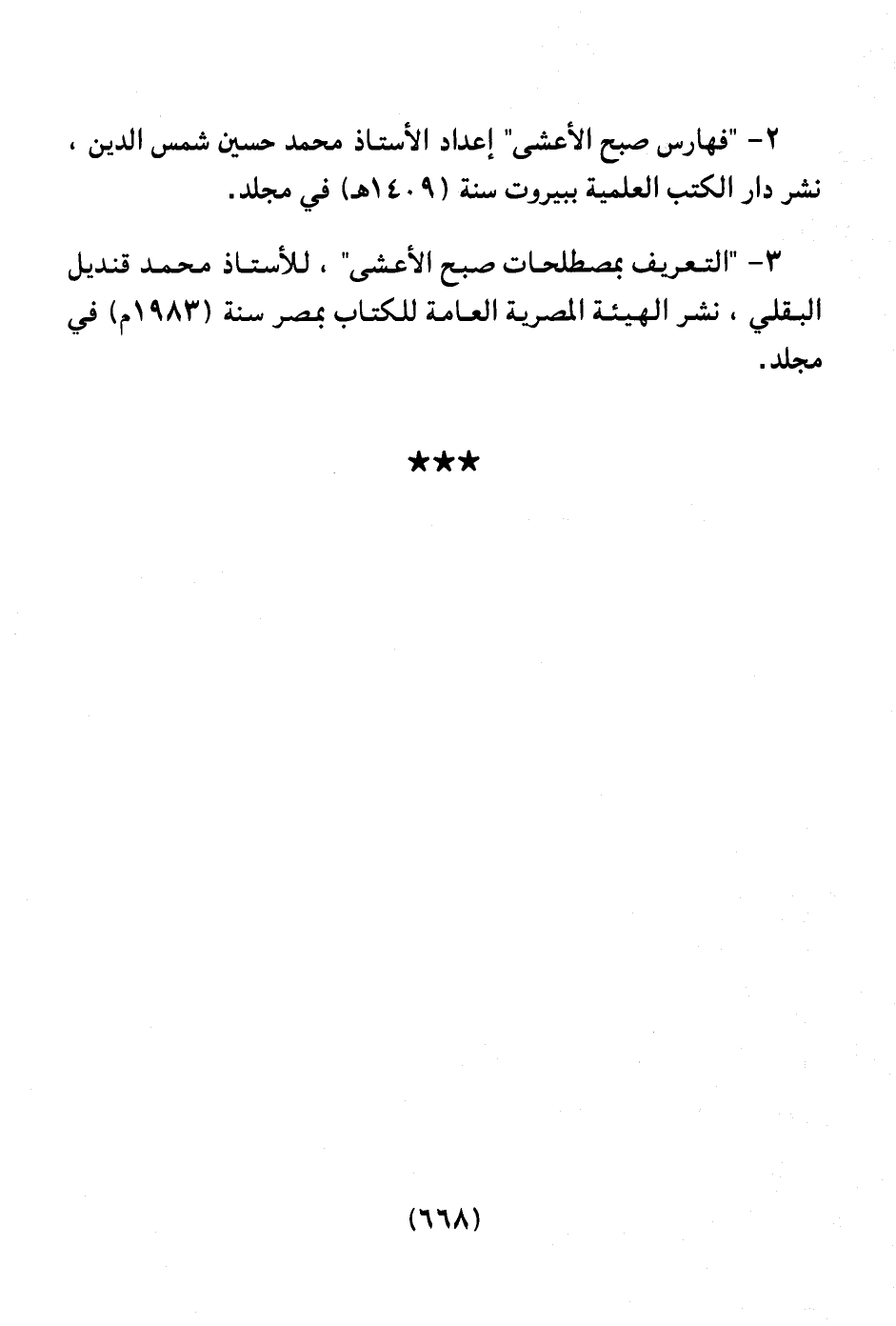 2 ـ " فهارس صبح الأعشى " إعداد الأستاذ محمد حسين شمس الدين، نشر دار الكتب العلمية ببيروت سنة (1409هـ) في مجلد.