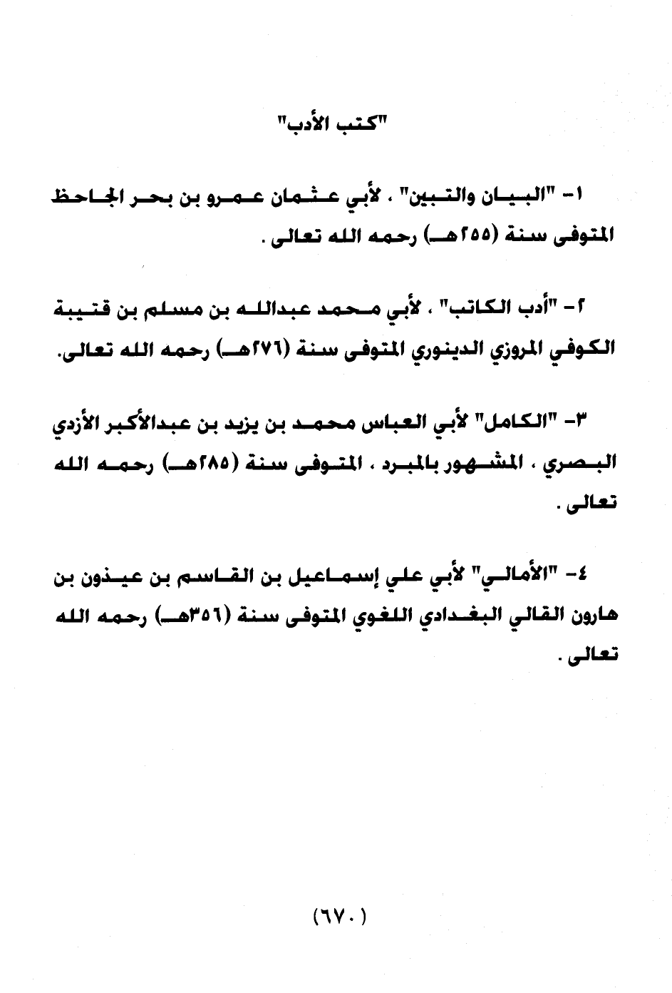 2 ـ " أدب الكاتب " لأبي محمد عبد الله بن مسلم بن قتيبة الكوفي المروزي الدينوري المتوفي سنة (276هـ) رحمه الله تعالى.