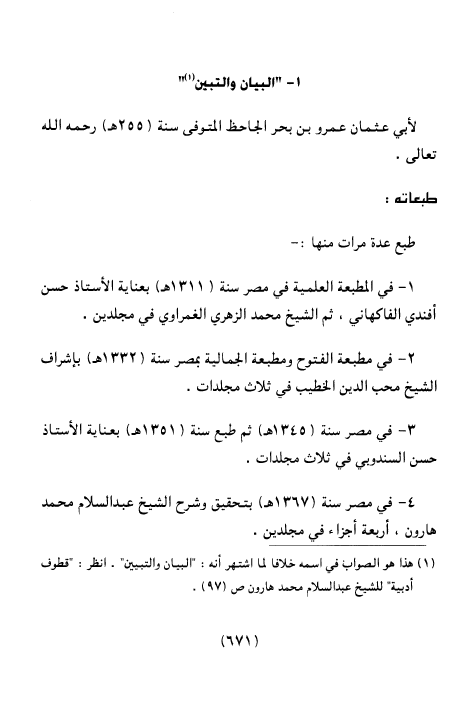 (¬1) هذا هو الصواب في اسمه خلافاً لما اشتهر أنه: " البيان والتبيين " انظر: " قطوف أدبية " للشيخ عبد السلام محمد هارون ص (97) .