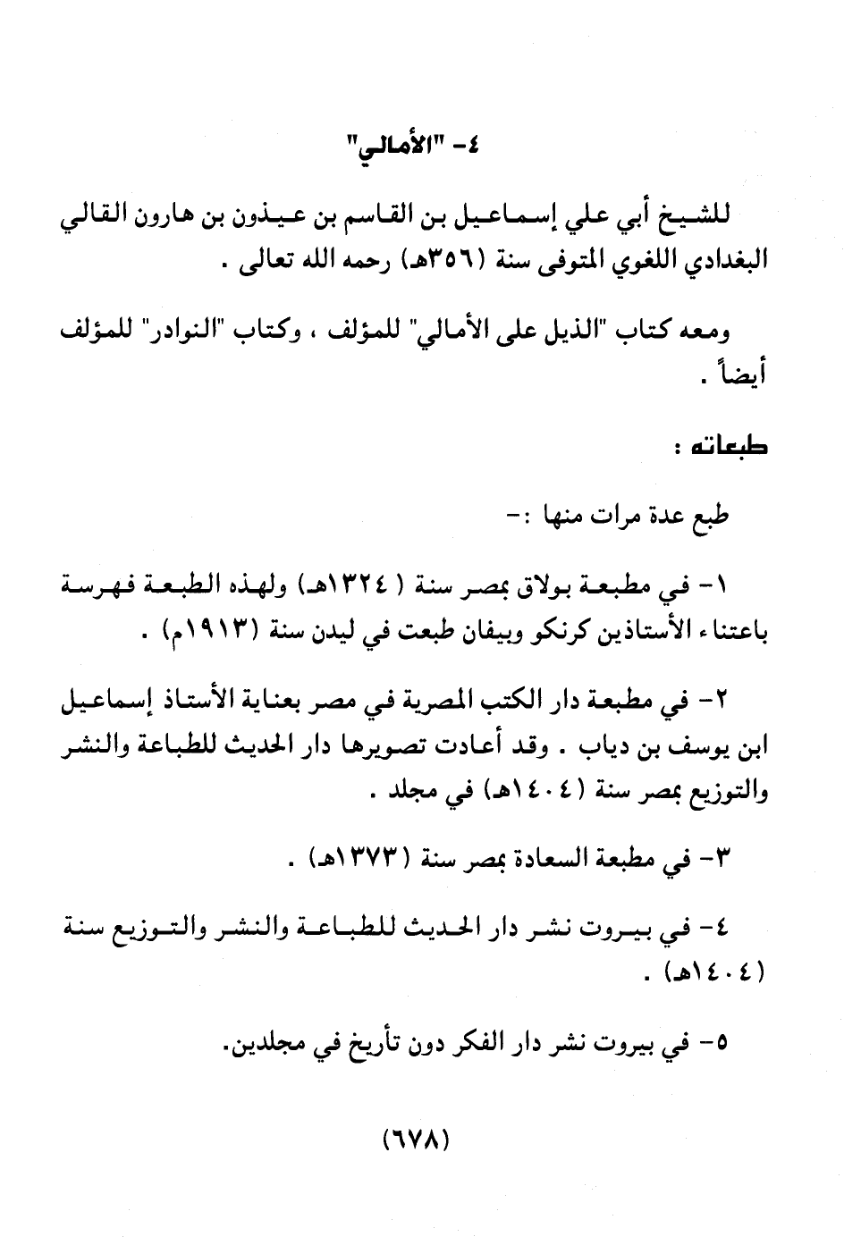 للشيخ أبي علي إسماعيل بن القاسم بن عيذون بن هارون القالي البغدادي اللغوي المتوفي سنة (356هـ) رحمه الله تعالى.