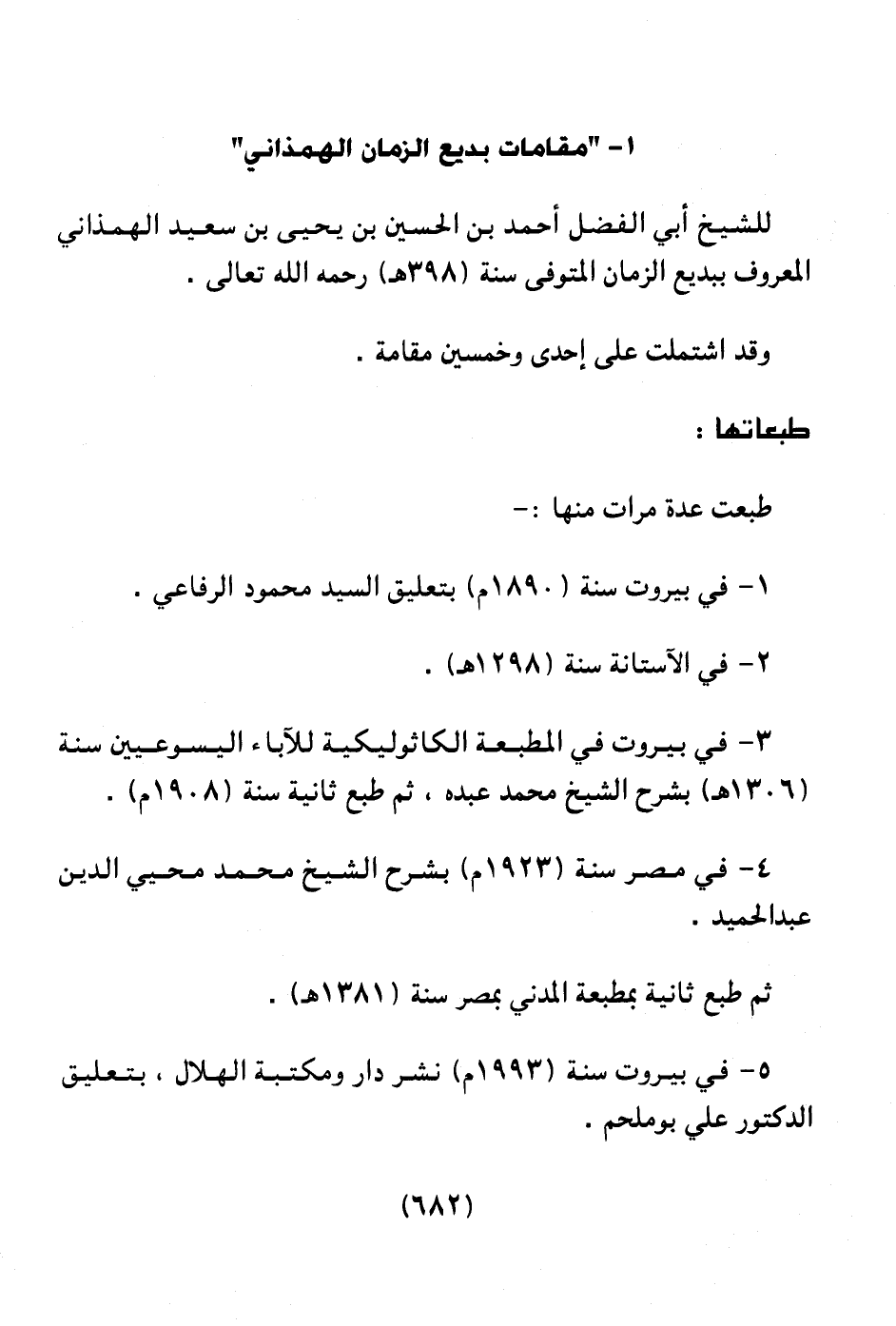 1 ـ " مقامات بديع الزمان الهمذاني "