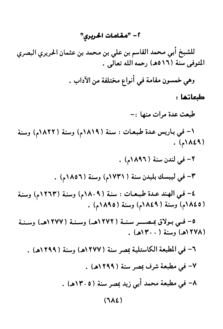 للشيخ أبي محمد القاسم بن علي بن محمد بن عثمان الحريري البصري المتوفي سنة (516هـ) رحمه الله تعالى.