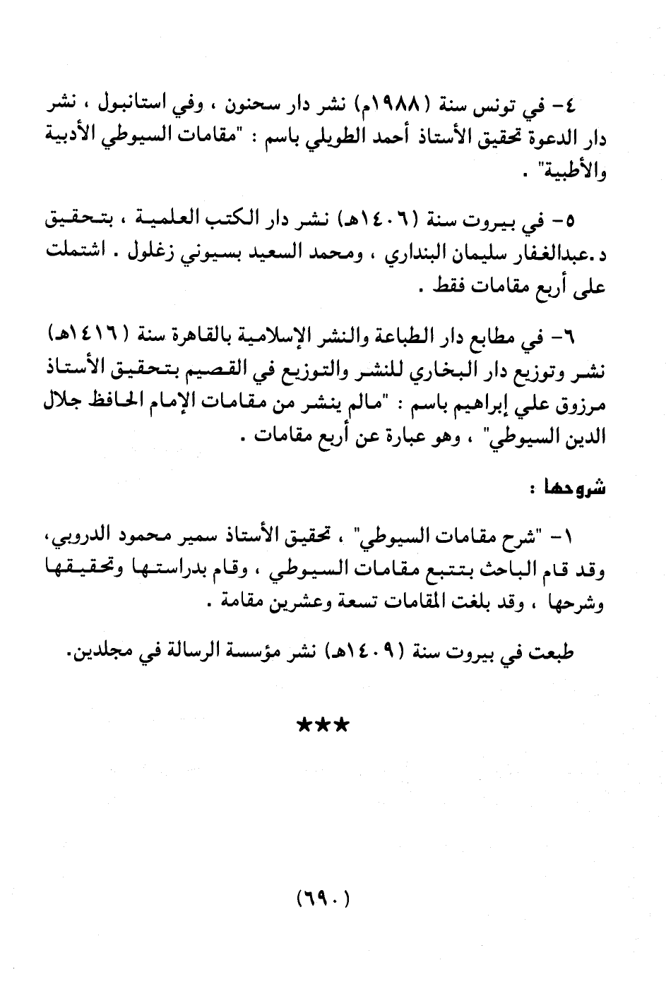 4 ـ في تونس سنة (1988م) نشر دار سحنون، وفي استانبول، نشر دار الدعوة تحقيق الأستاذ أحمد الطويلي باسم: " مقامات السيوطي الأدبية والأطبية ".