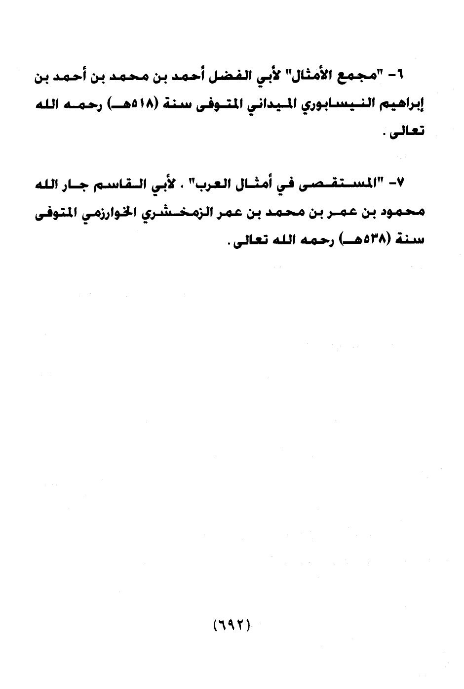 6 ـ " مجمع الأمثال " لأبي الفضل أحمد بن محمد بن أحمد بن إبراهيم النيسابوري الميداني المتوفي سنة (518هـ) رحمه الله تعالى.