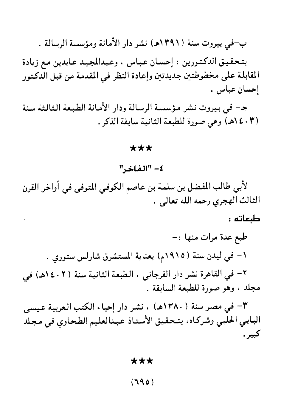 جـ ـ في بيروت نشر مؤسسة الرسالة ودار الأمانة الطبعة الثالثة سنة (1403هـ) وهي صورة للطبعة الثانية سابقة الذكر.